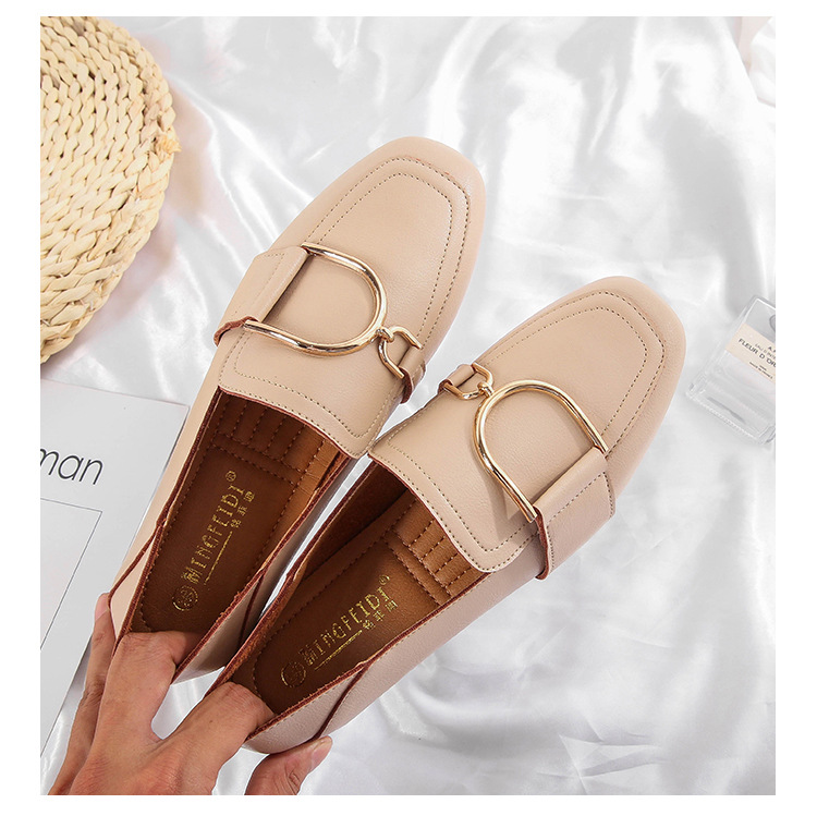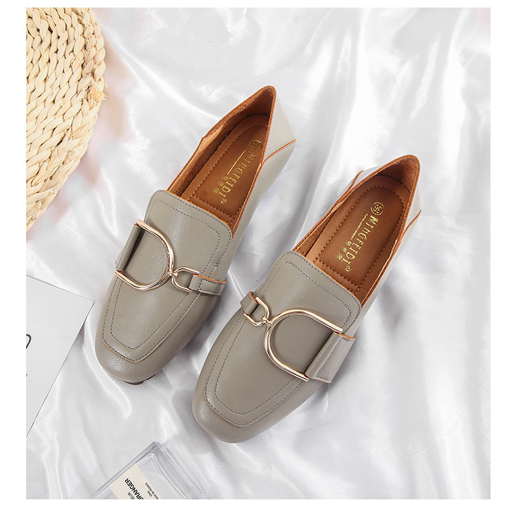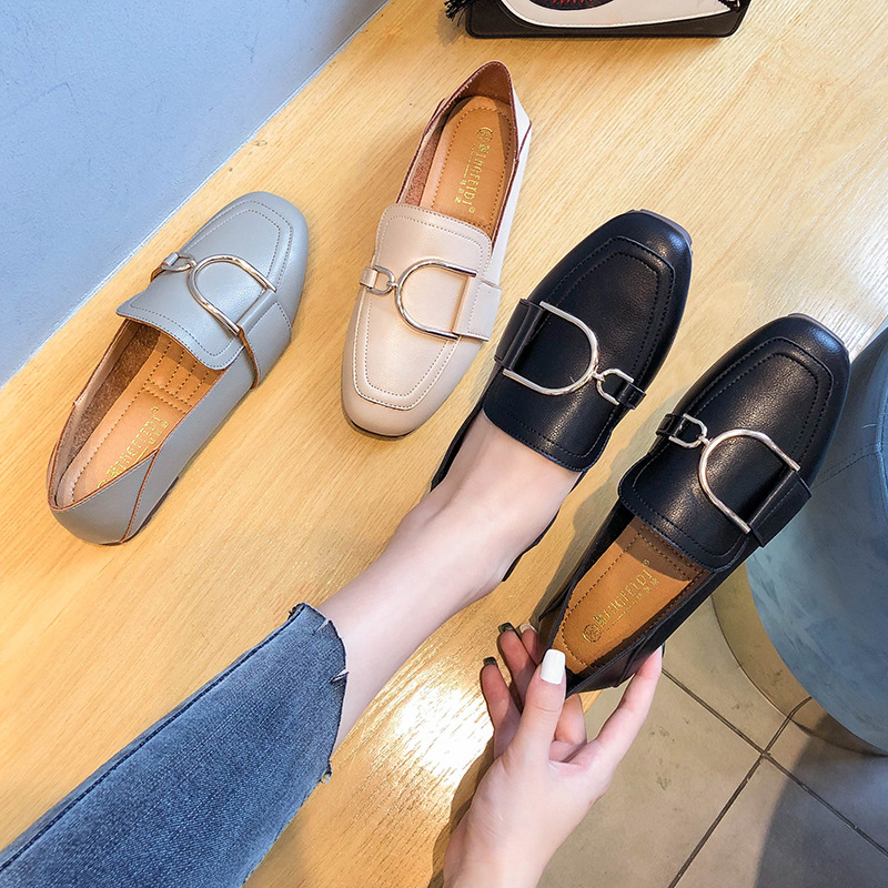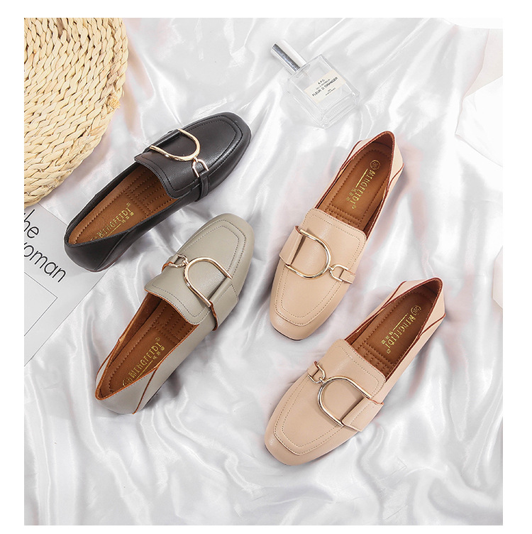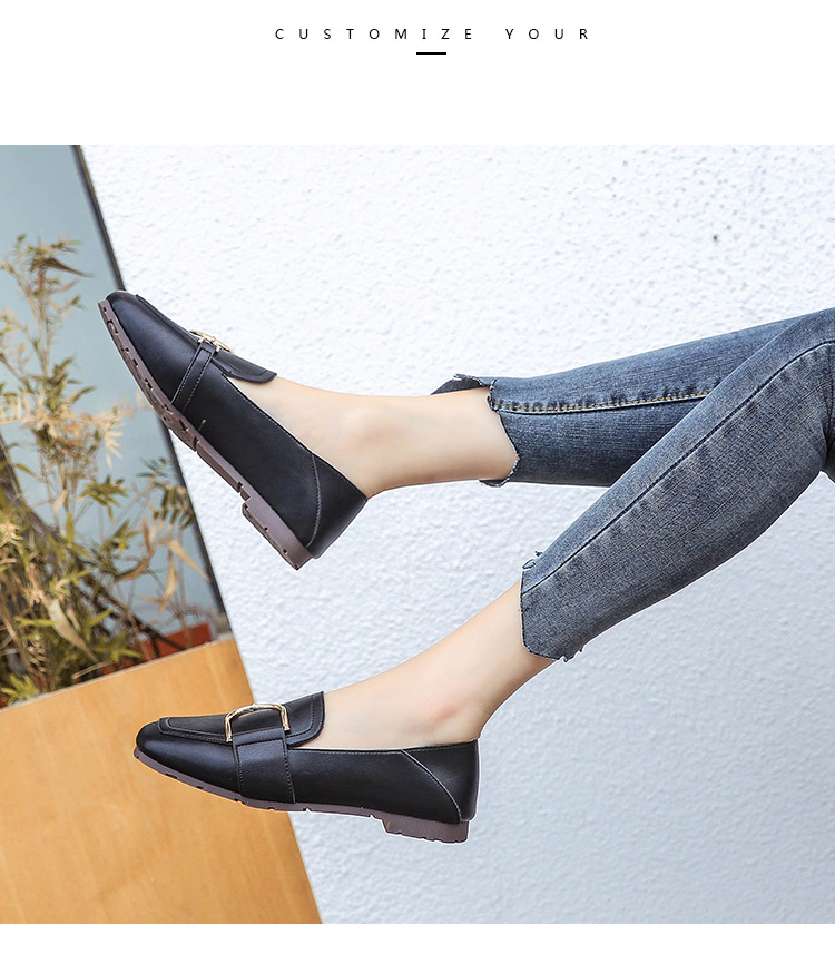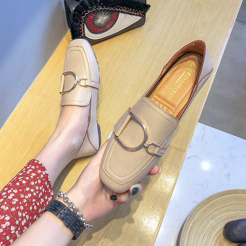 Shallow Mouth Flat British Style Small Leather Shoes Square Toe Soft Sole