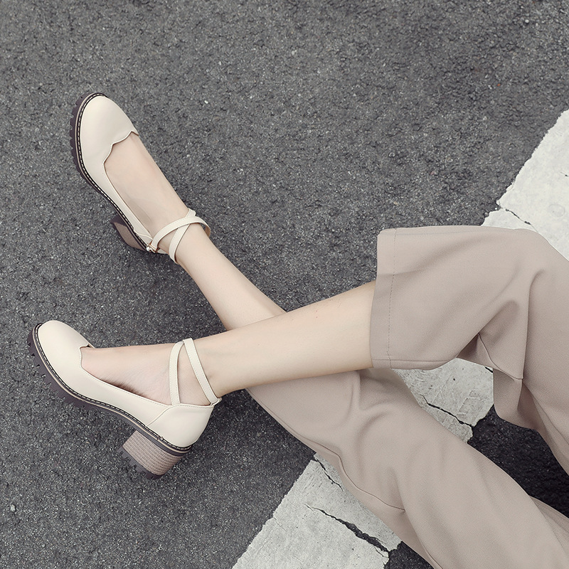 Shallow Mouth Spring And Autumn Shoes Ankle Cross Strap Slip-on Thick Heel Single Shoes