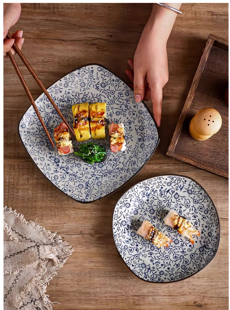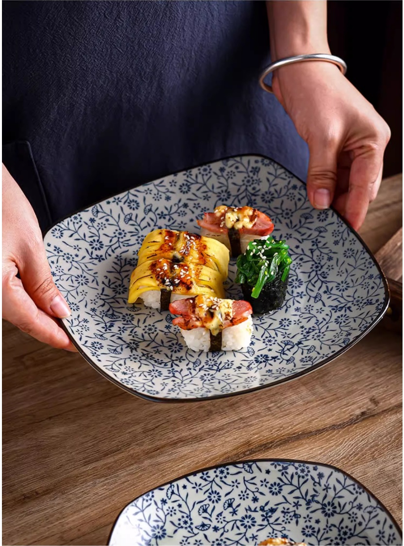 Color classification: 8-inch square shallow plate auspicious flowers, 10-inch square shallow plate auspicious flowers