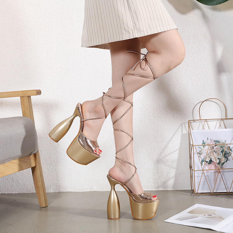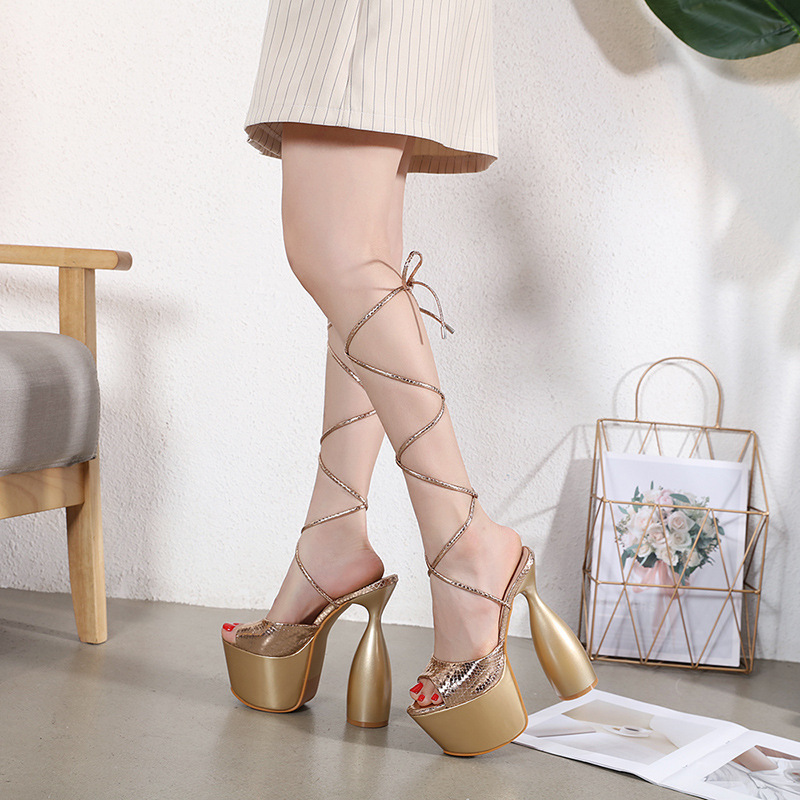 Popular elements: thick heel, cross straps, waterproof platform
