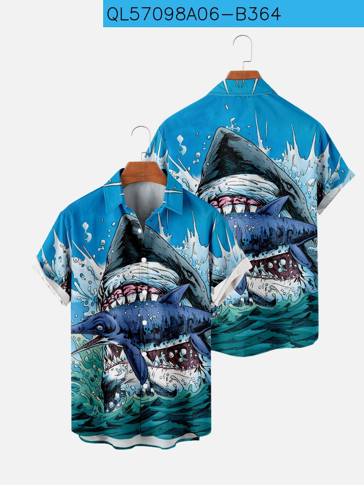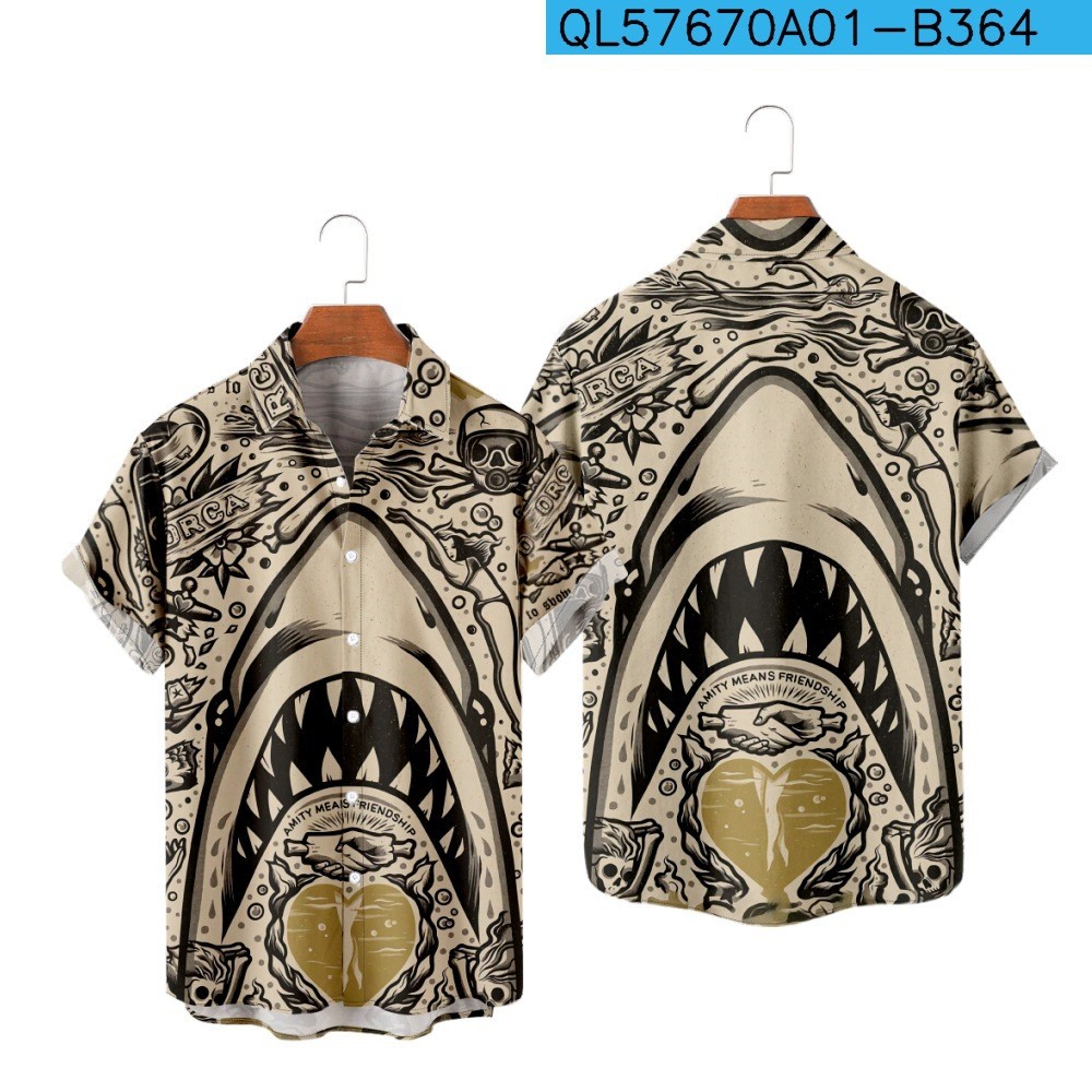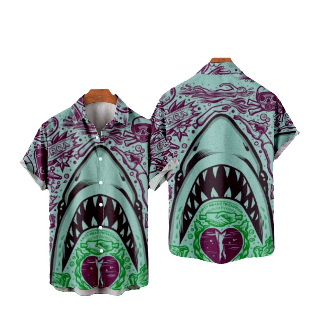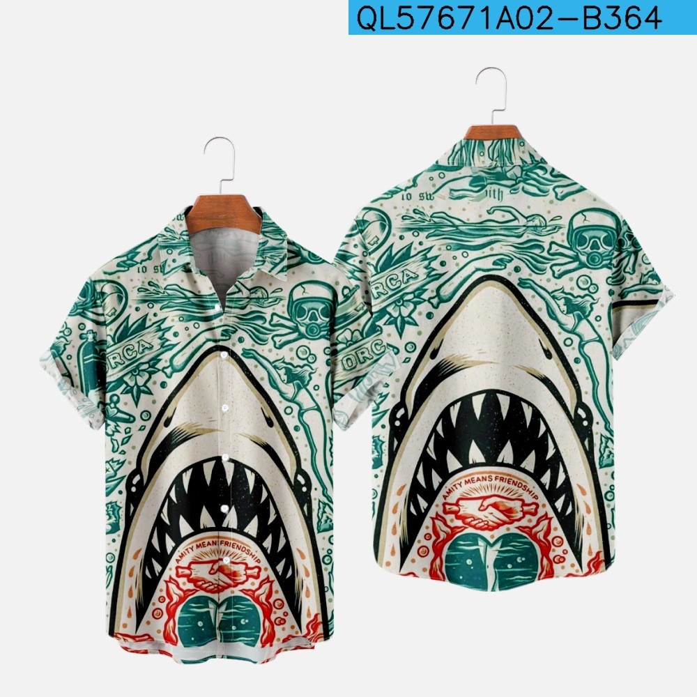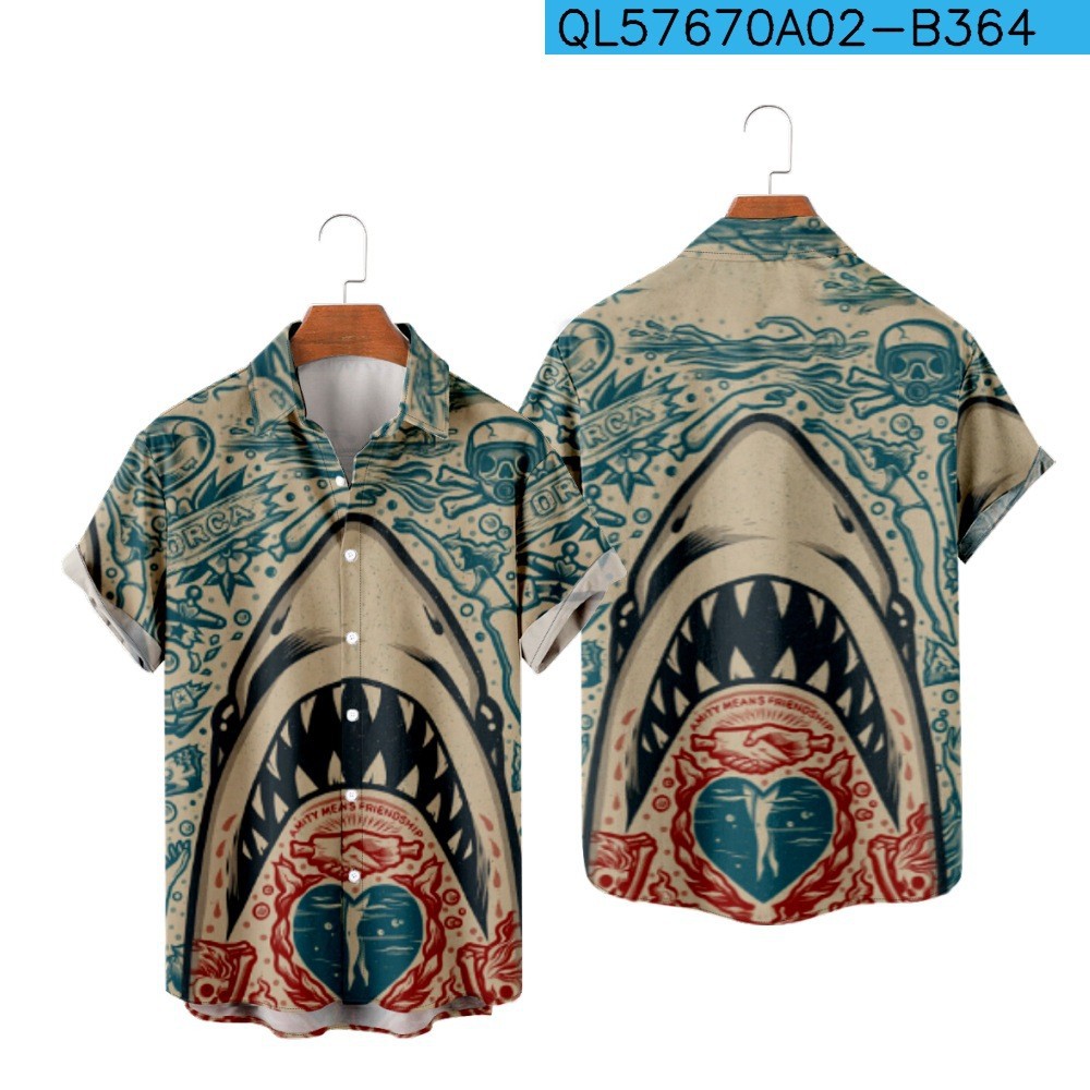 Shark 3d Printing Casual Loose Short Sleeves