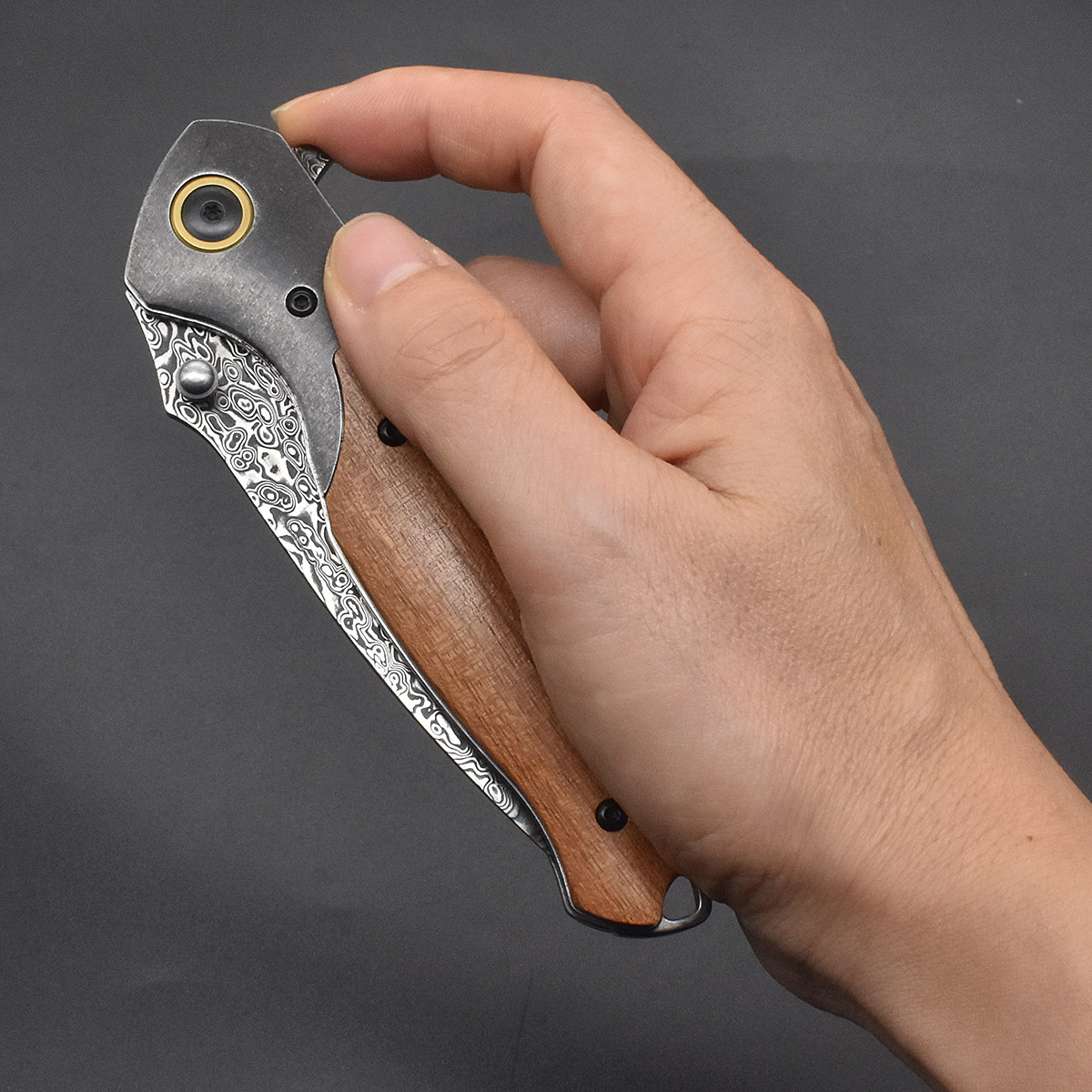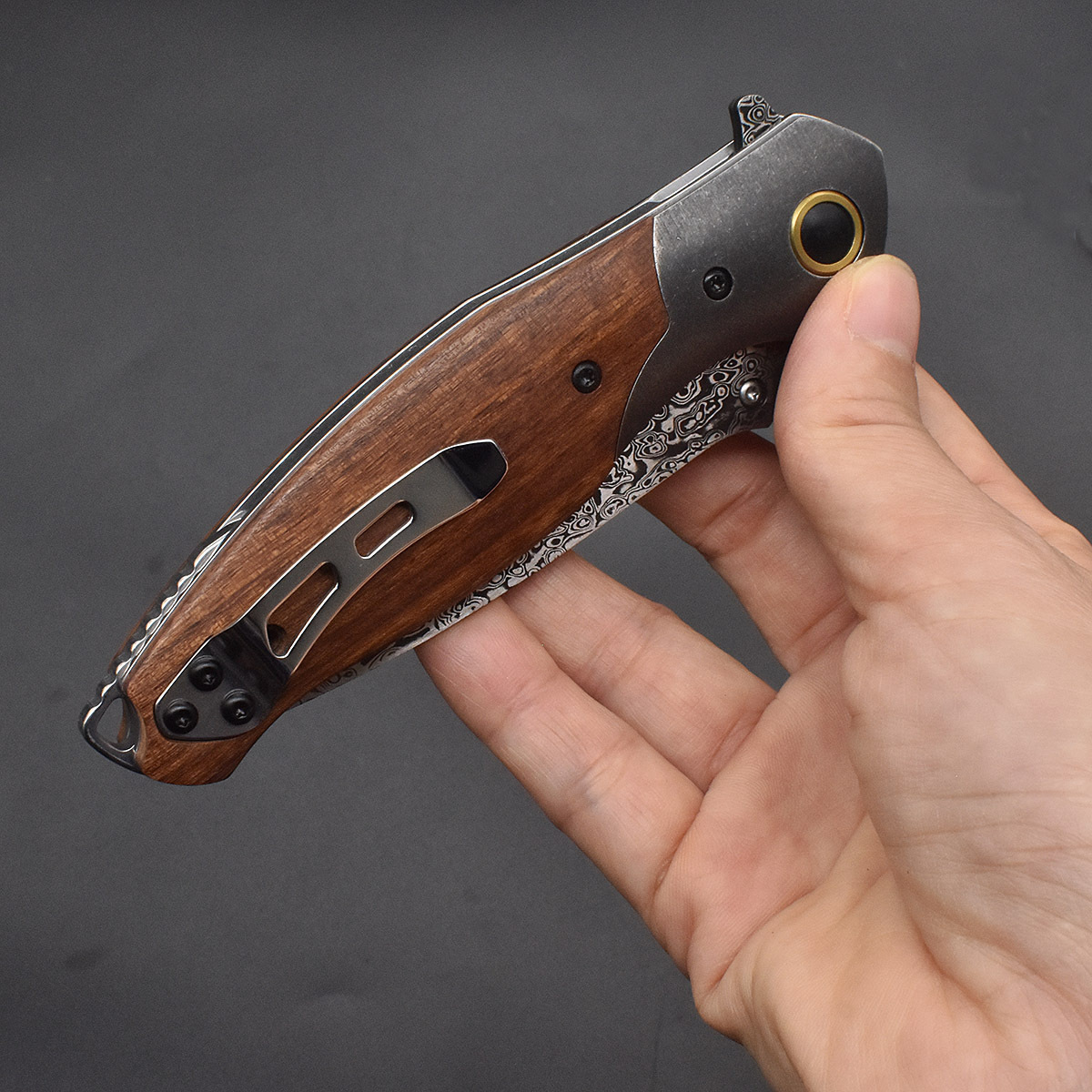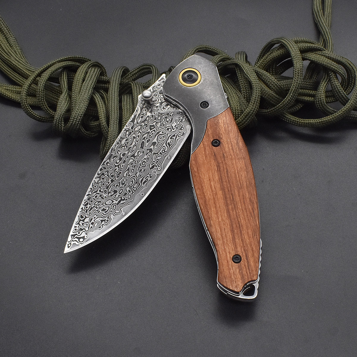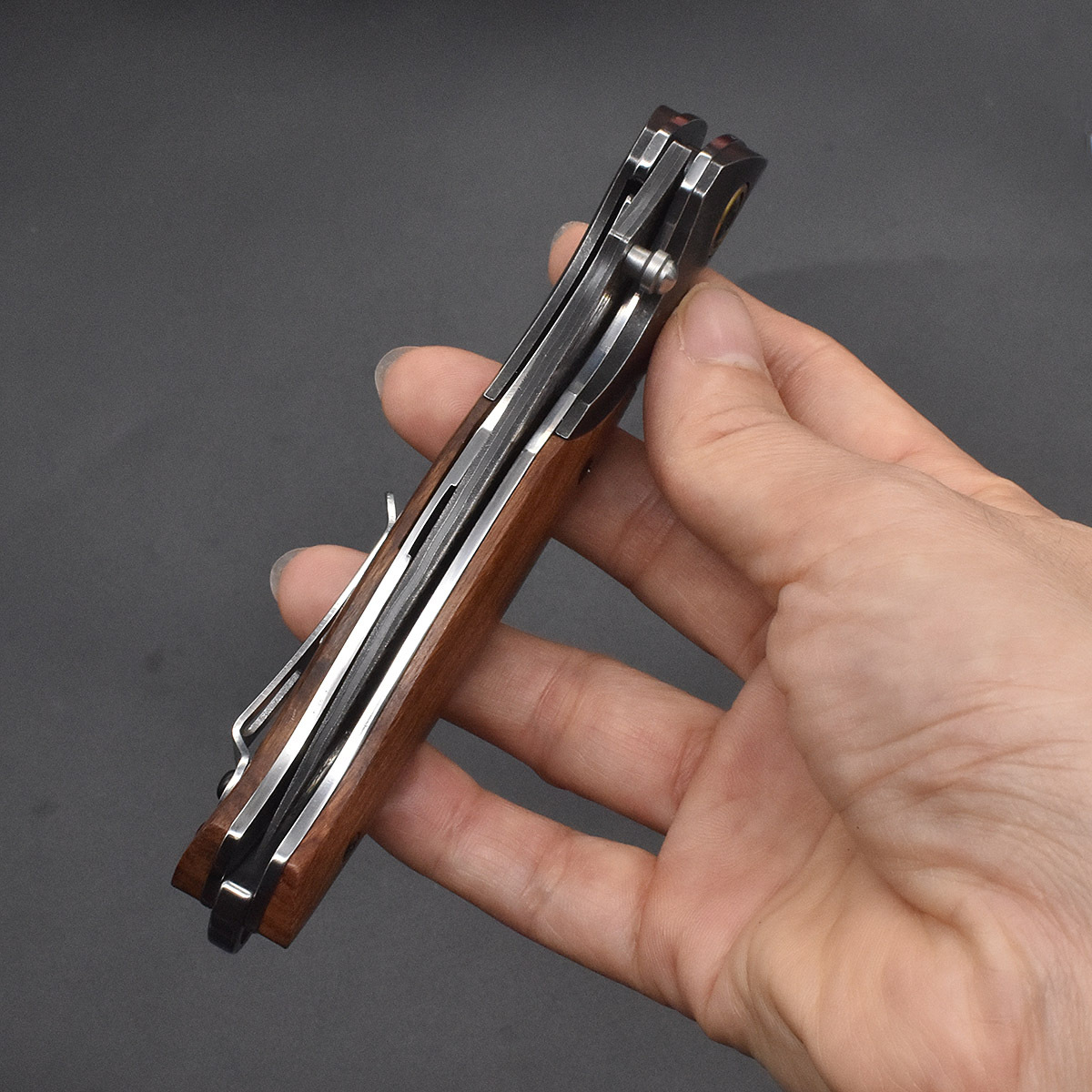 Handle material: cocobolo and stone-washed stainless steel