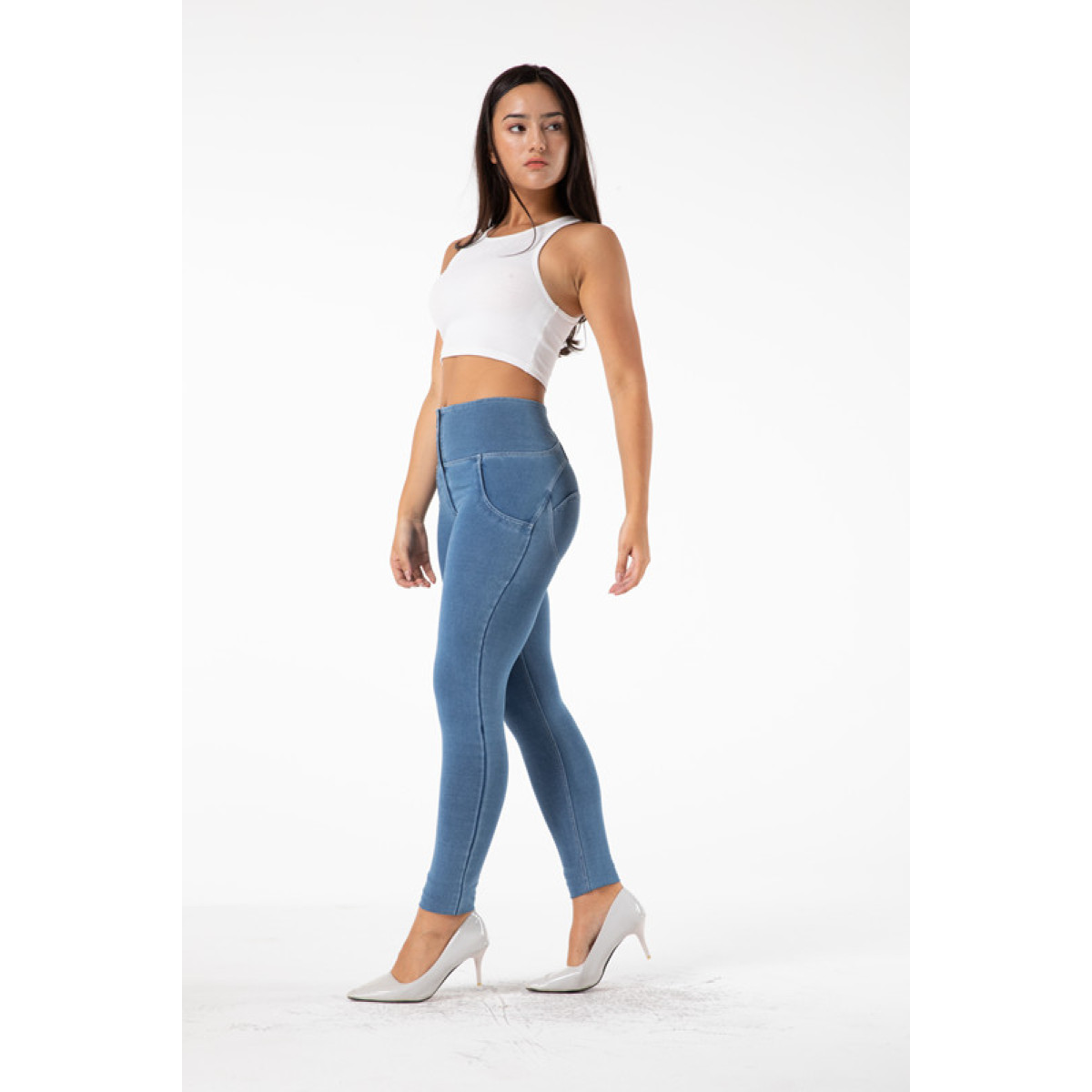 Shascullfites Melody Butt Lifting High Waist Push Up Jeggings Light Blue Gym Jeans Bum Lifted Denim Leggings