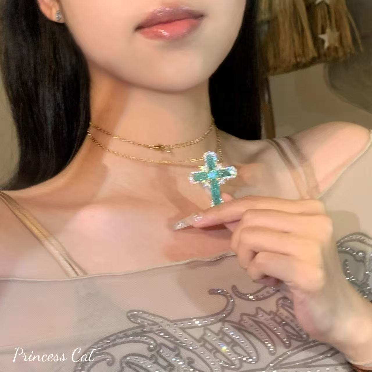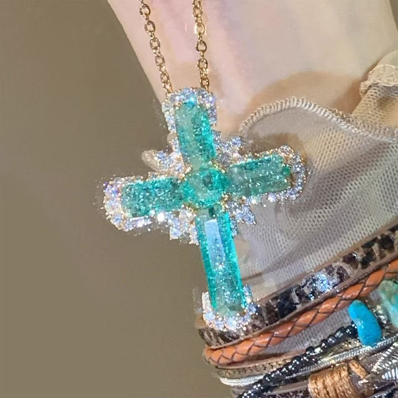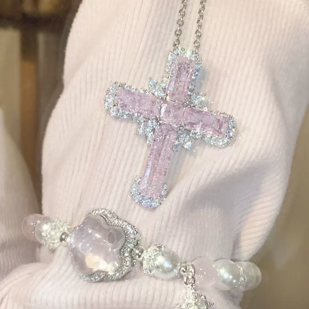 Color: Pink Cross Necklace (White K), Blue Cross Necklace (Gold)