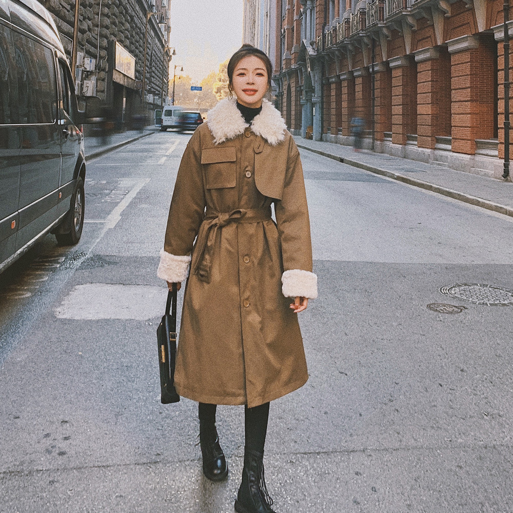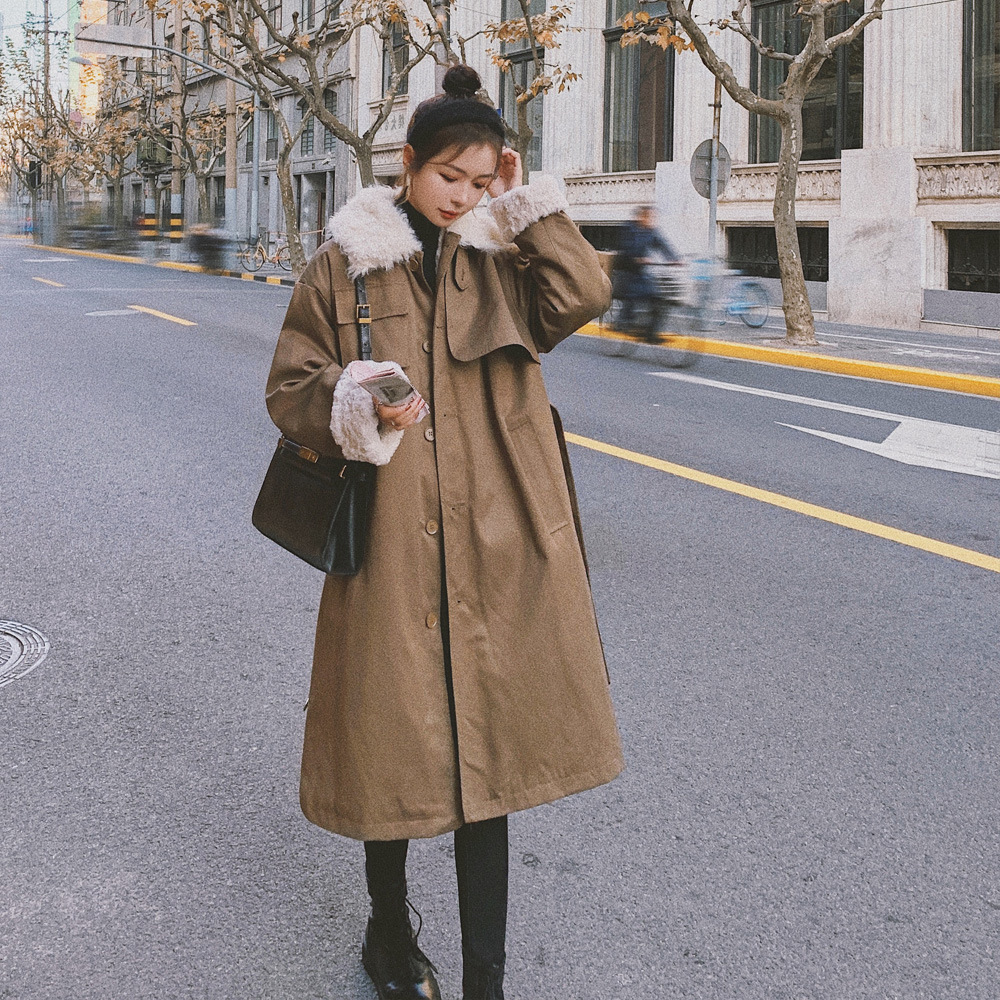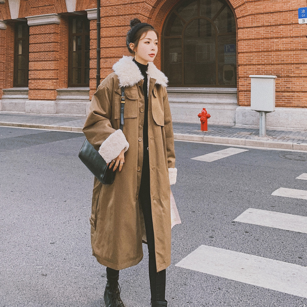 Clothing style details: pockets, fur collar