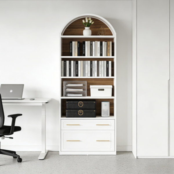 Elegant Arch Design - This sophisticated bookshelf boasts a stylish arched design and clean wood frames, adding elegance to any room. Its versatile style fits well with both modern and traditional decor.