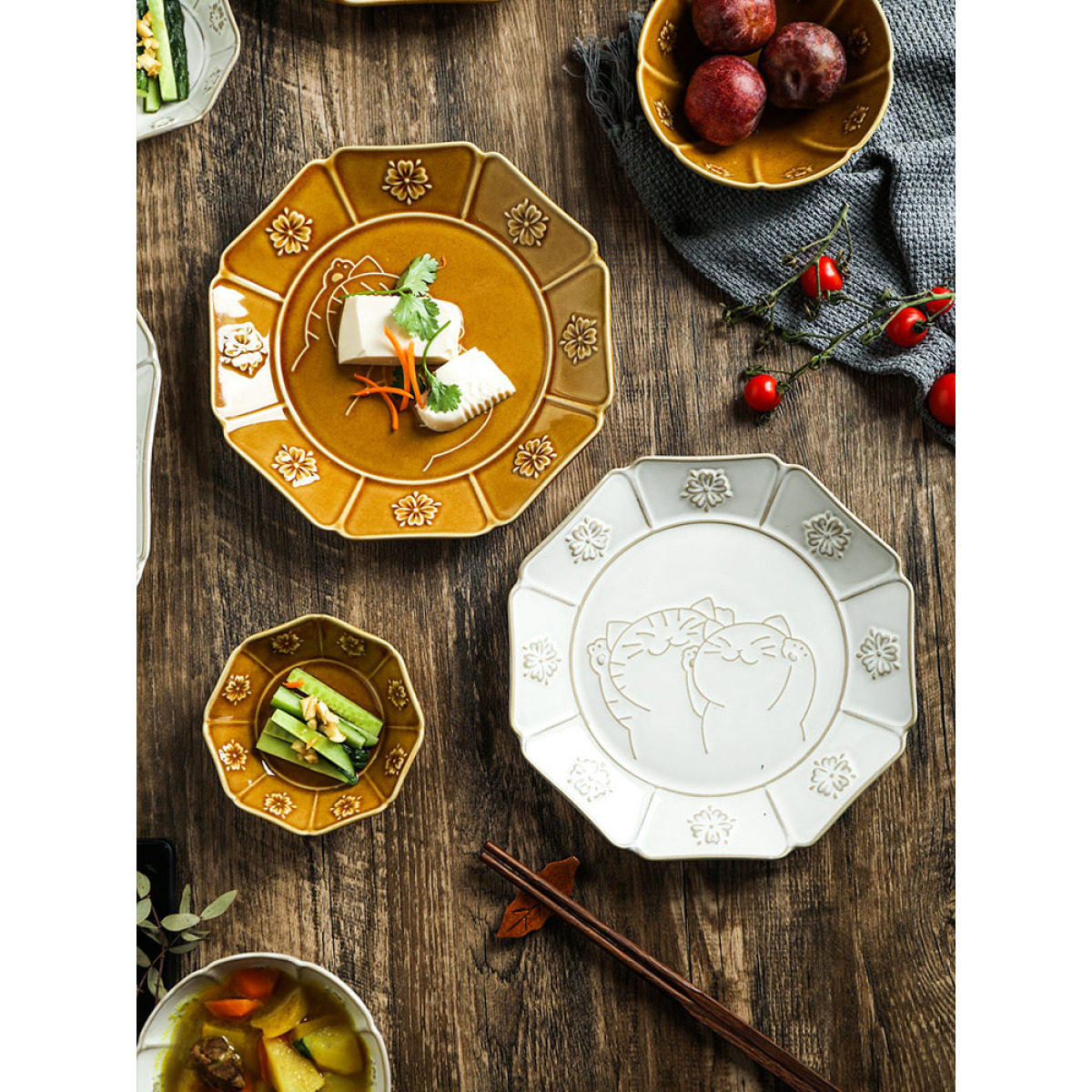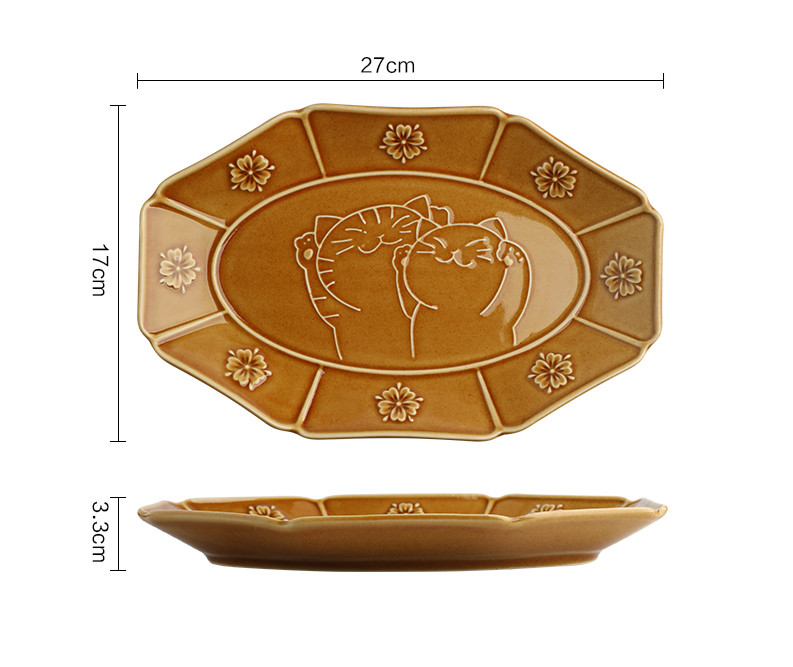 Lucky cat ceramic embossed tableware*1