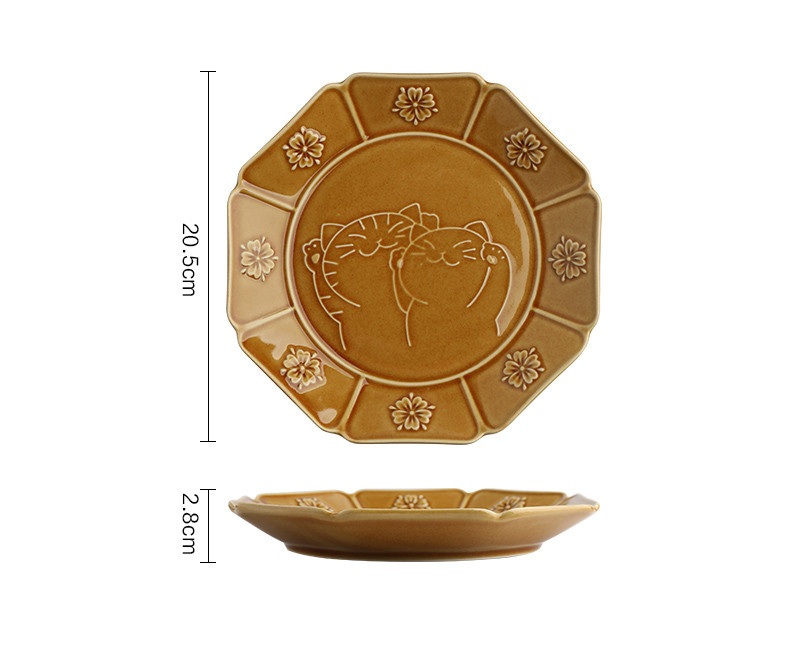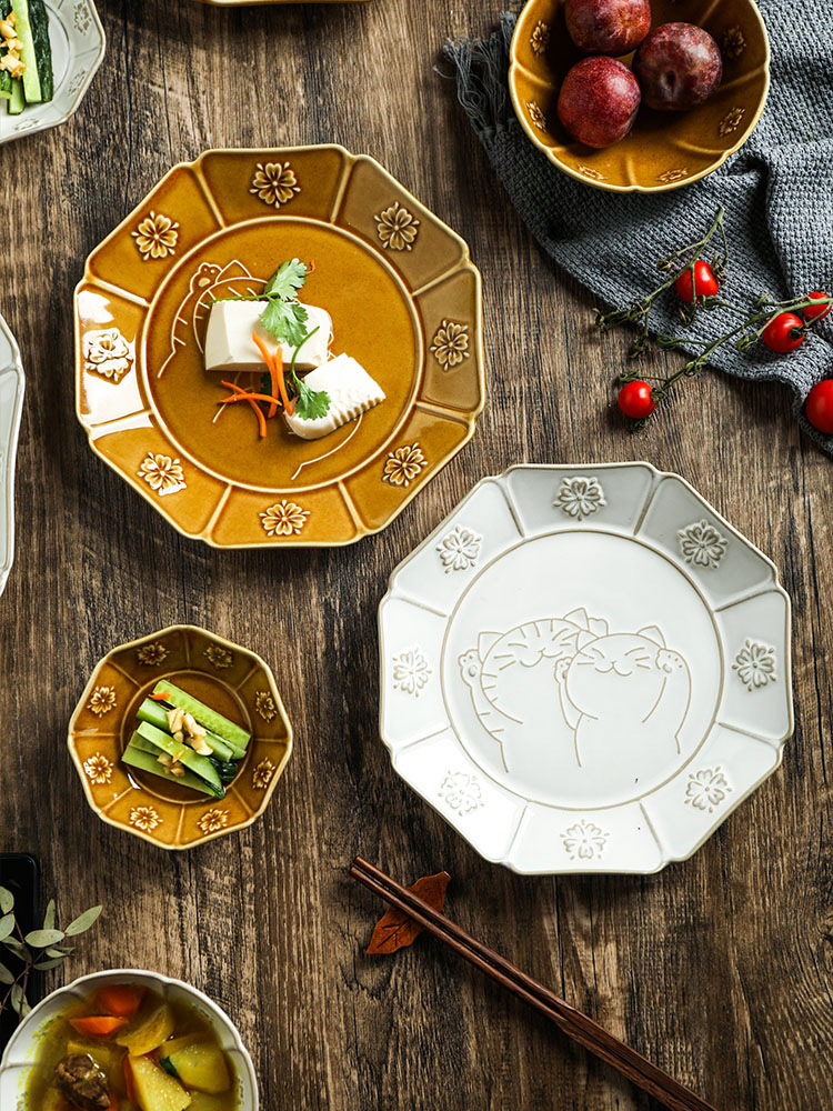 Sheli Japanese Lucky Cat Ceramic Embossed Tableware Household