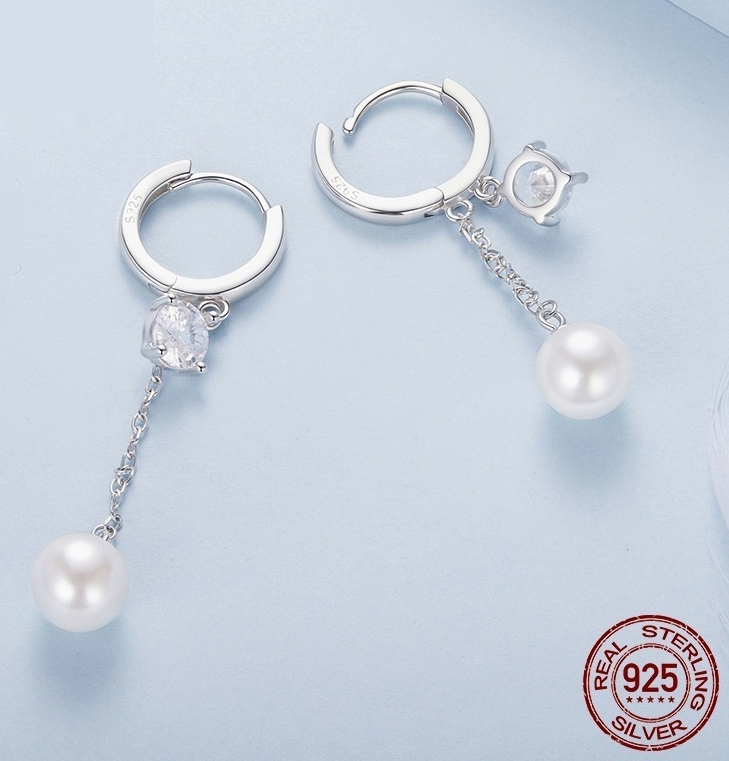 Shell Pearls Tassel Ear Clip Smart Shining Long Face