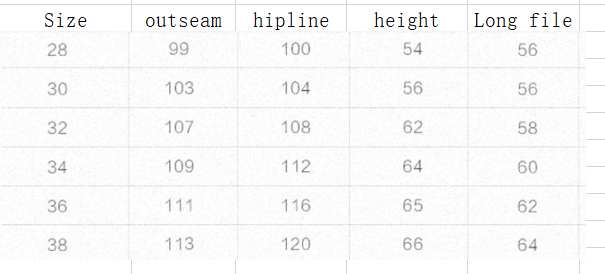 S/28 (2 '1) M/30 (2' 3) L/32 (2 '5) XL/34 (2' 7) XXL/36 (2 '9) XXXL/38 (3' 1)