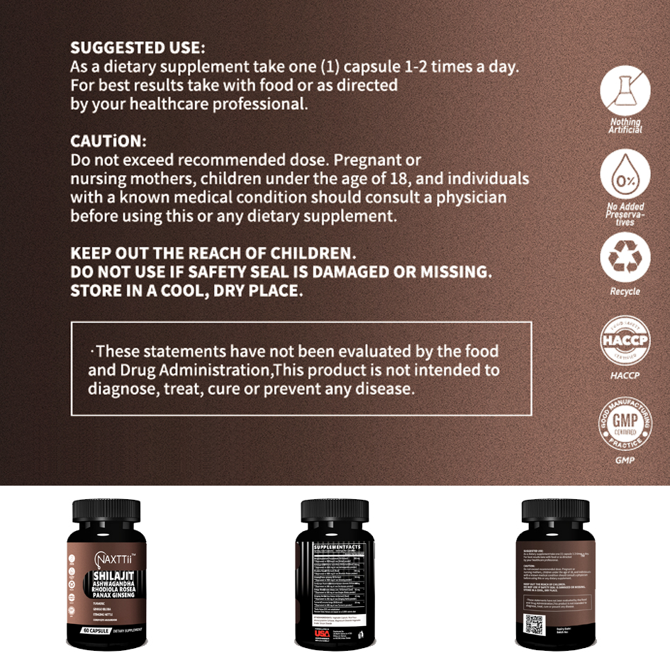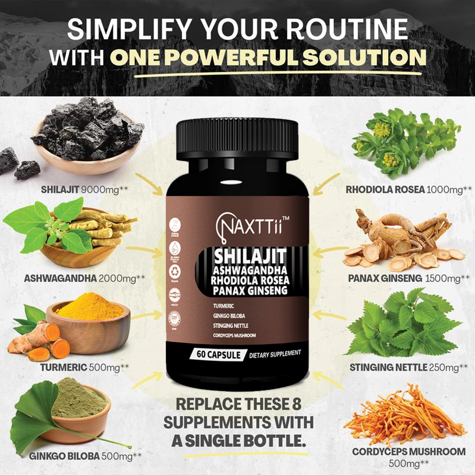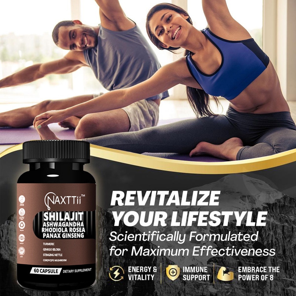 Shilajit Herbal Energy Capsules are a premium dietary supplement designed to support energy, vitality, and overall wellness. This advanced formula combines 8 powerful herbal ingredients traditionally used to promote stamina, immune health, and natural body balance.