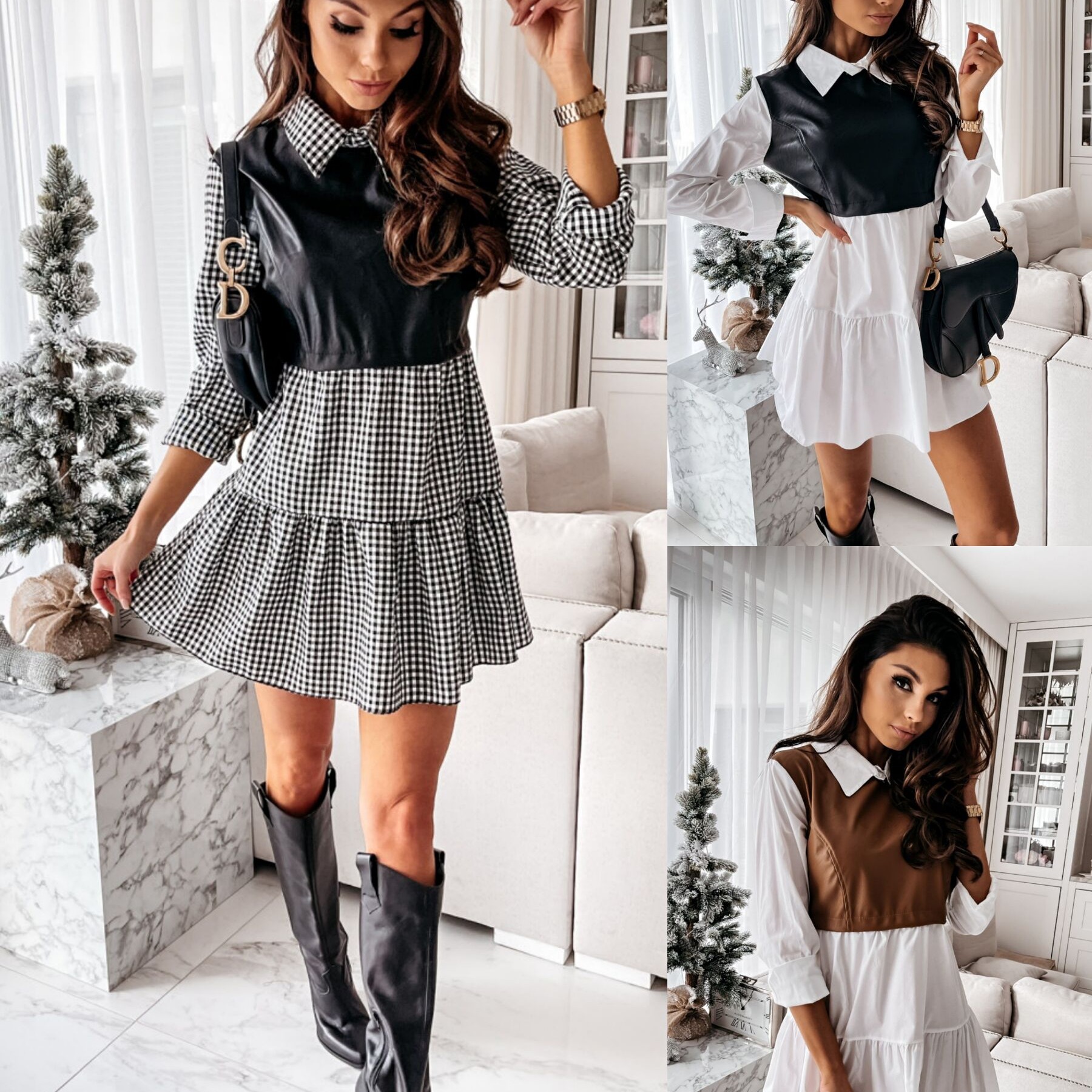 Color: White with Black, White with Khaki, Plaid