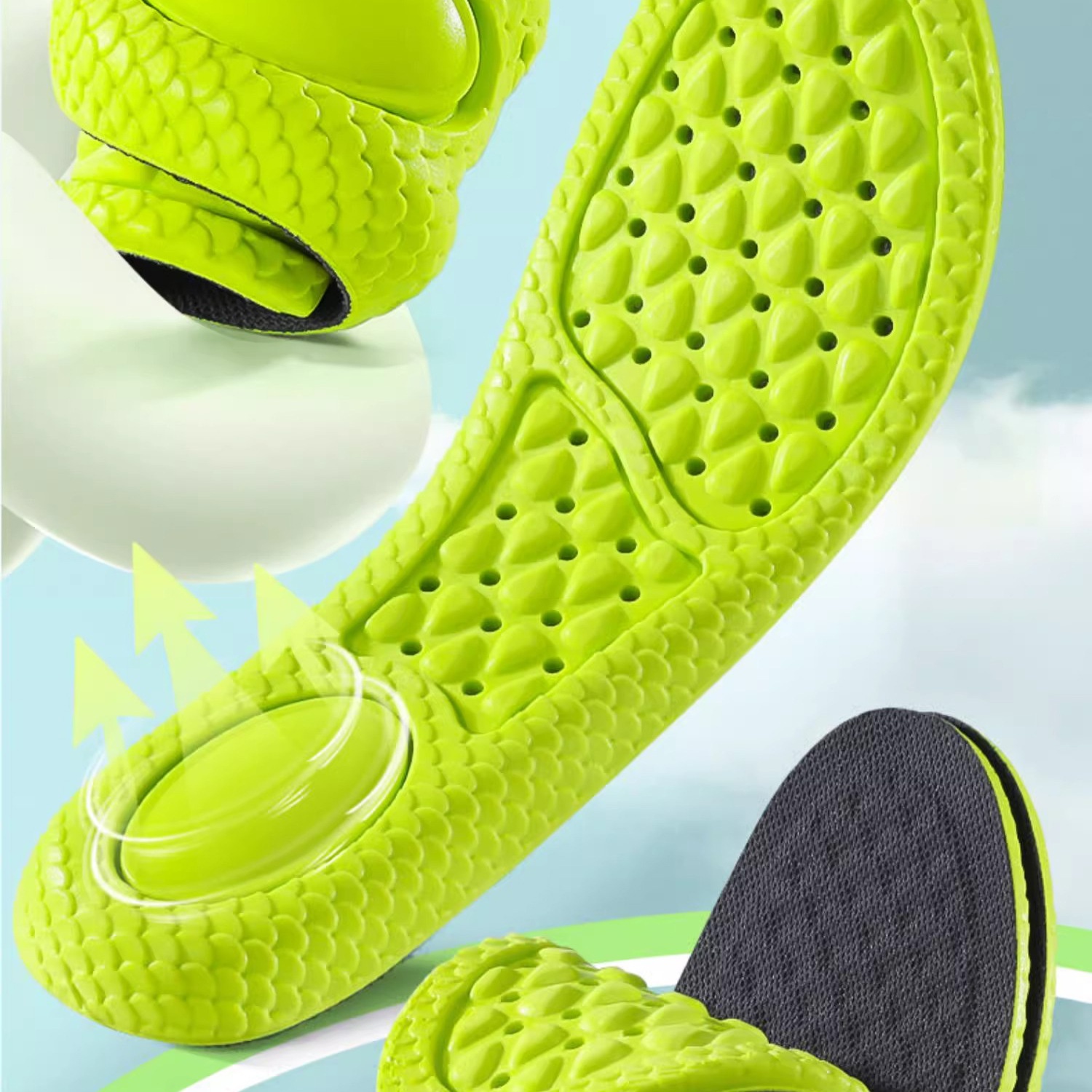 Color: New Dragon Scale Latex Insole – White Base with Gray; New Dragon Scale Latex Insole – Green Base with Black; New Dragon Scale Latex Insole – Green Base with Gray; E Latex Insole [Yellow Base with Gray Top]; E Latex Insole [White Base with White Top]; E Latex Insole [White Base with Black Top]; Upgraded Large Nut/ Green and Black/ EVA; Upgraded Large Nut/ Green and Gray/ EVA; Upgraded Large Nut/ Bright Yellow/ EVA