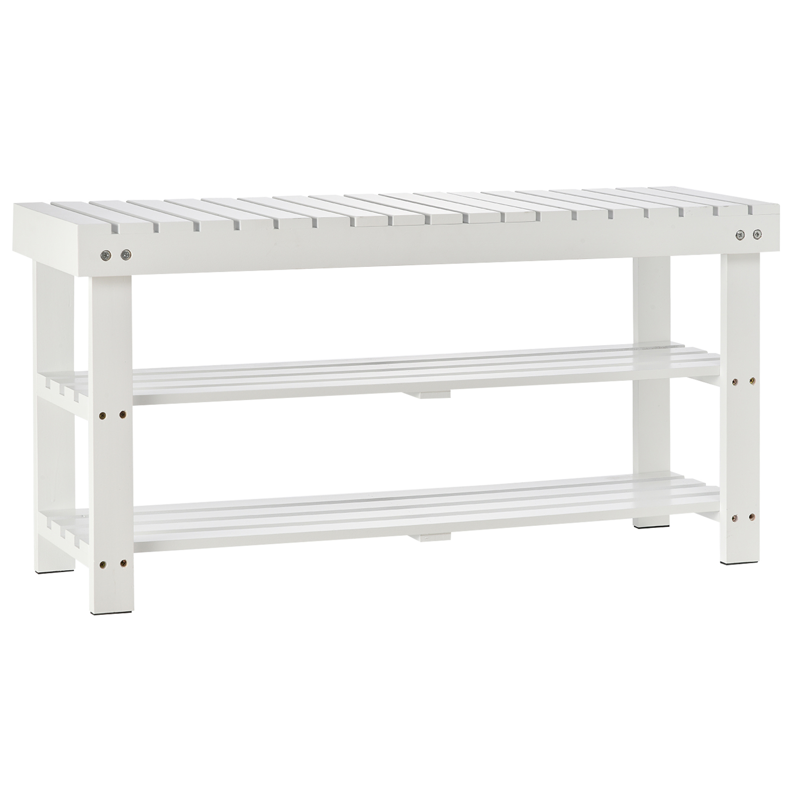 Shoe Bench, 3-Tier Wooden Shoe Rack With Hidden Storage Compartment, Slatted Shelves, Home Storage Unit, Hallway Furniture, White, 90L X 29W X45H Cm