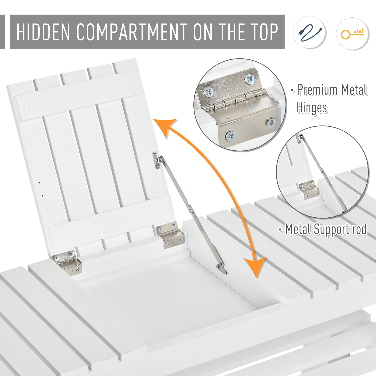 • Small hidden compartment on top shelf for concealed and handy storage