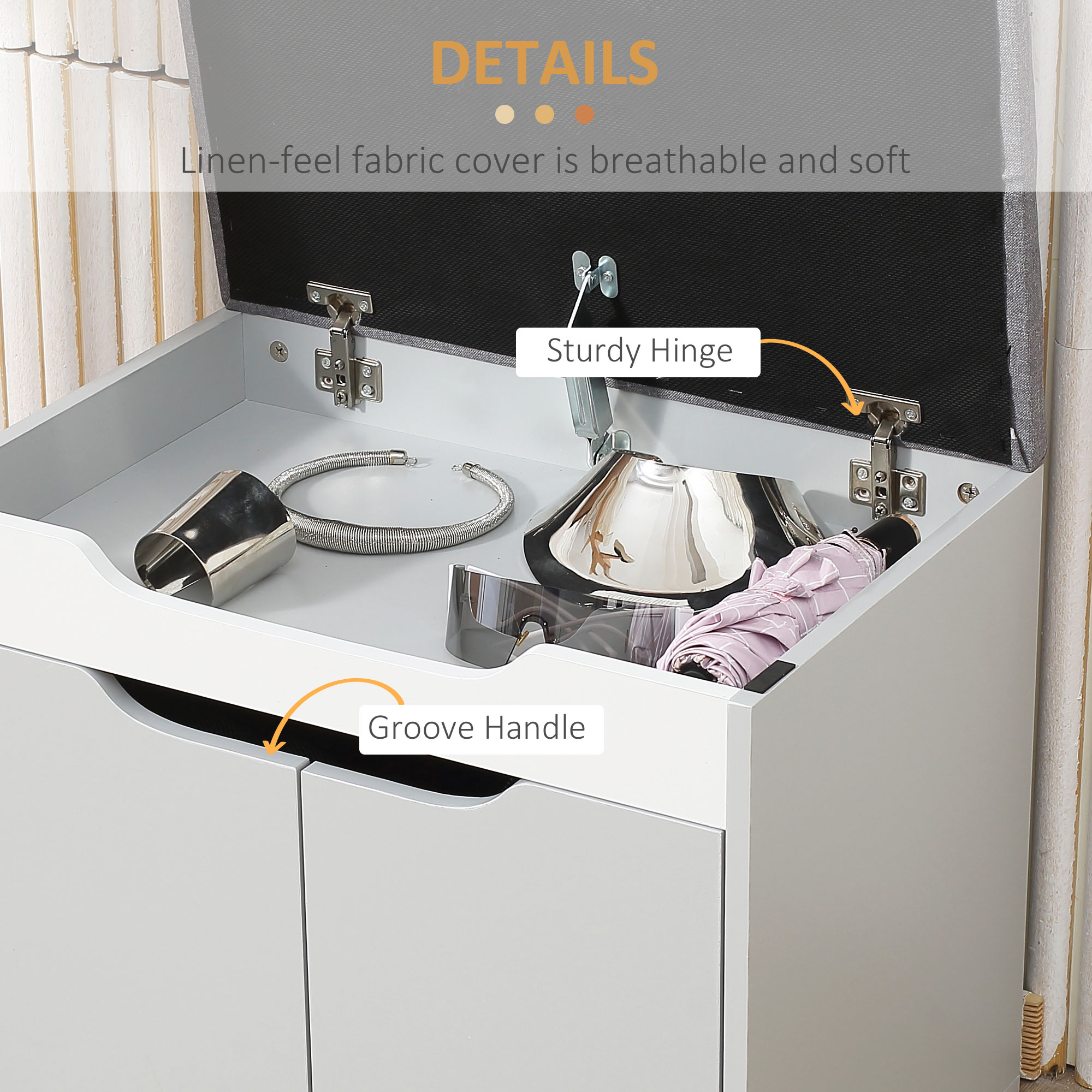 A compact and comfortable shoe storage with seat, from . Keep this shoe bench in your hallway for convenience when leaving and entering the house. It comes with a cupboard with adjustable shelf to keep four pairs of shoes in (approx.) It also features a small top compartment for little bits and bobs - concealed up the padded lift up lid, which also acts as a seat when putting shoes on and taking them off. Completed with handy groove handles.