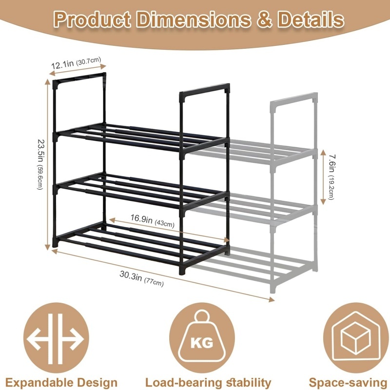 -Featuring a retractable design, it expands to 77cm (30inches) to accommodate up to 10 pairs of adult shoes.