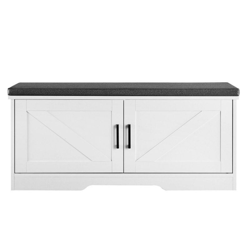 Shoe Storage Bench, 39.4 X 14.0 X 18.1 Inch Shoe Organizer With Padded Seat Cushion, Entryway Bench With 2 Barn Doors And Height Adjustable Shelf, For Hallway, Living Room, Bedroom, White+Black