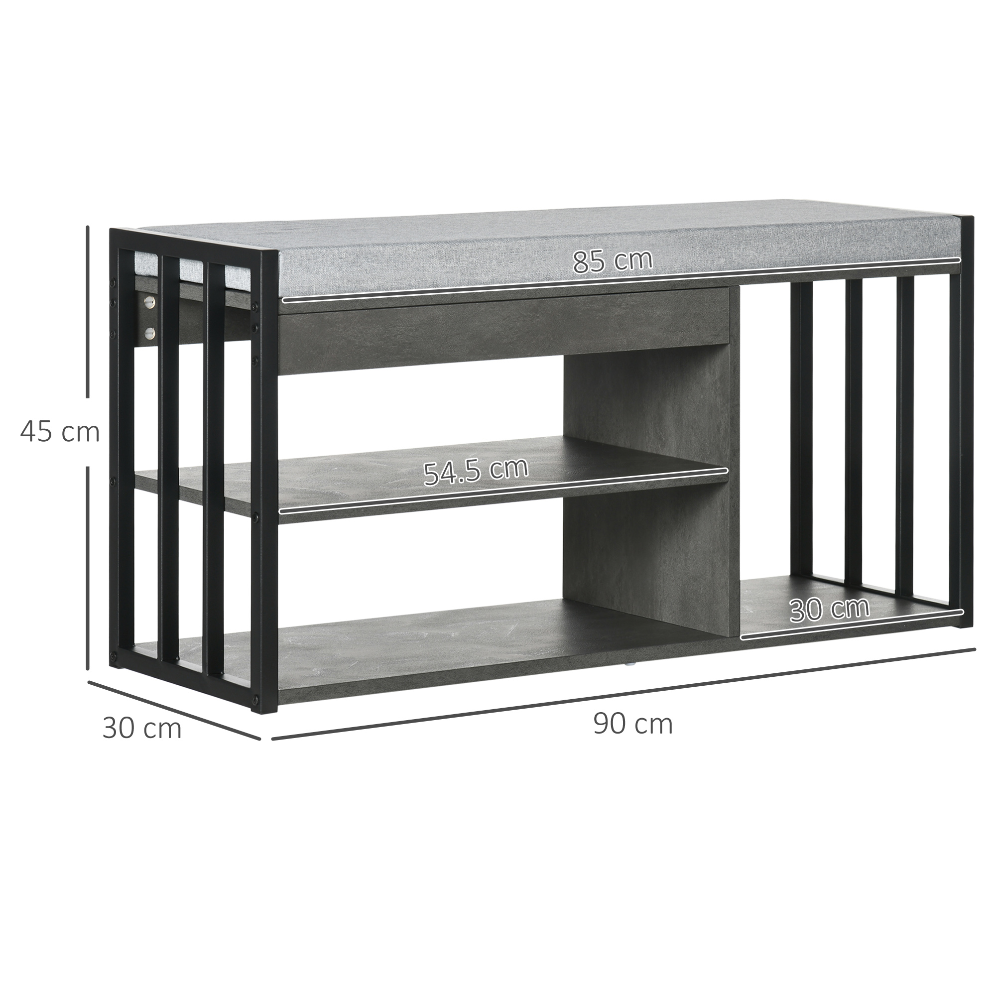 Organise footwear with our shoe hallway bench. With two open shelves, there's room for six pairs of your shoes, with a tall side shelf for boots; it's great for personal use. It features a top padded seat - sit comfortably for a moment as you put shoes on and take them off. With a steel frame, this shoe storage with seat has a strong, supportive core. Suitable for everyday.