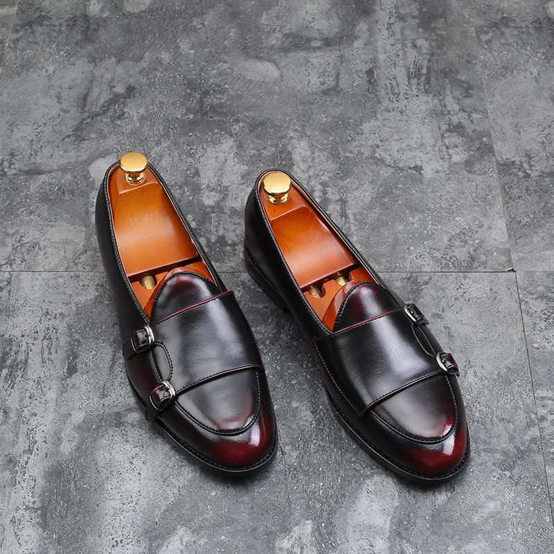 Shoes Vintage British Men's Leather Shoes Belt Buckle Tide