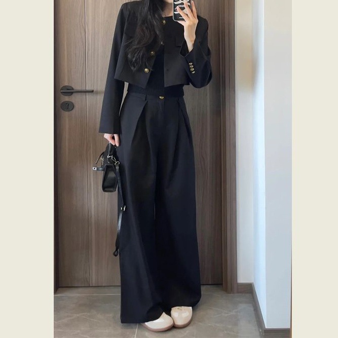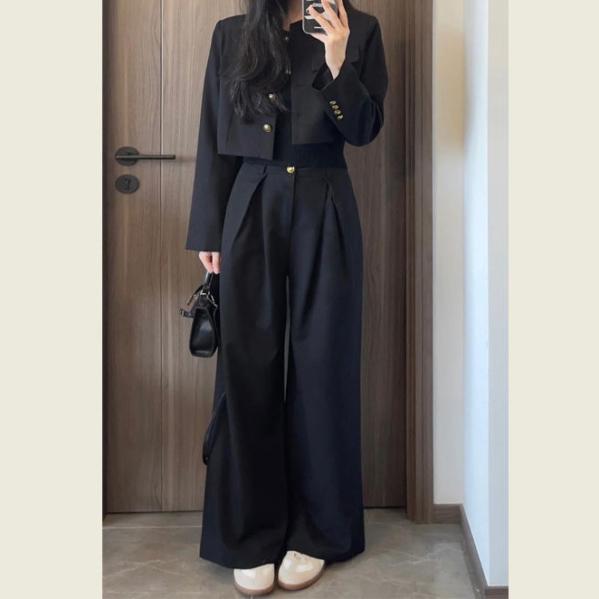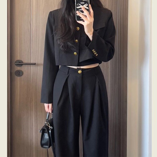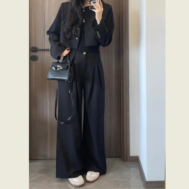 Short Blazer Jacket And High-waisted Straight-leg Pants Two-piece Set