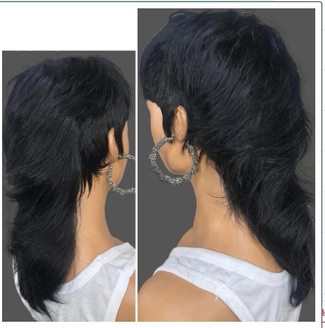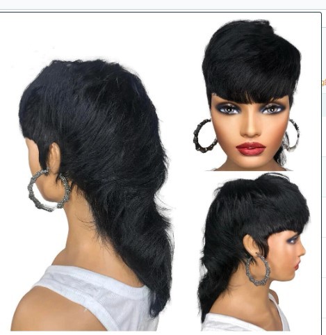 Short Hair Black Chemical Fiber Synthetic Mechanism Wig Fishtail