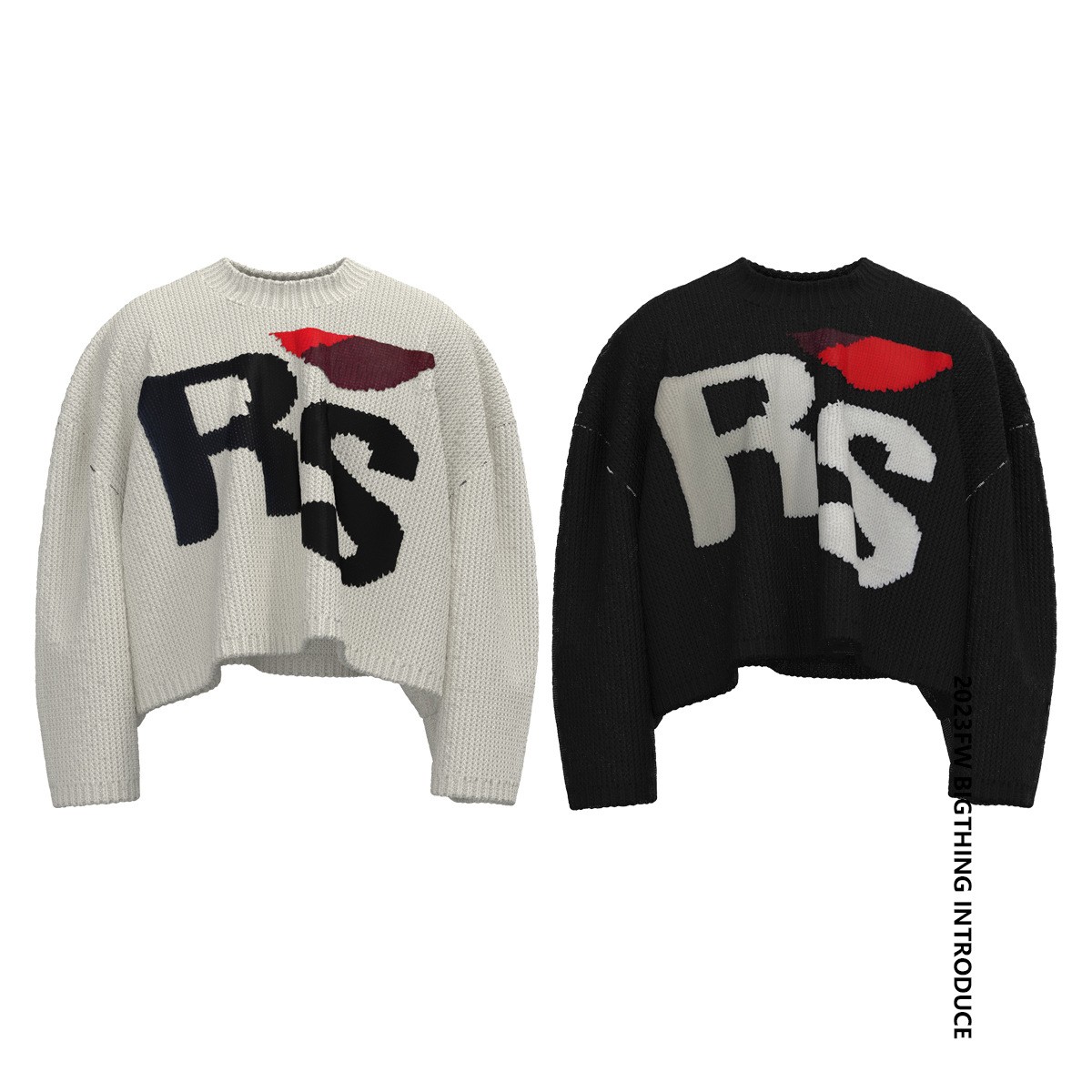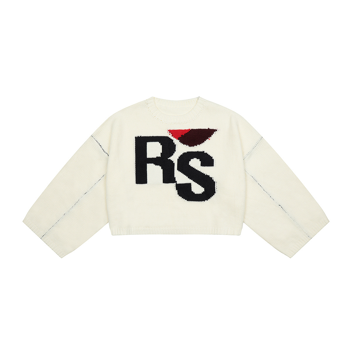 Short Long Sleeve Loose-fitting Pullover Round-neck Knitted Sweater