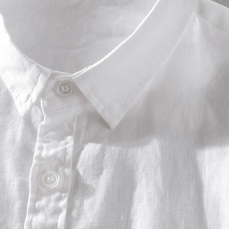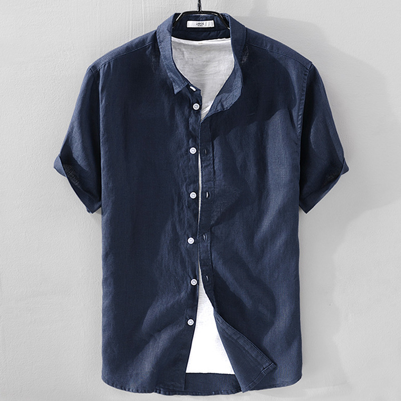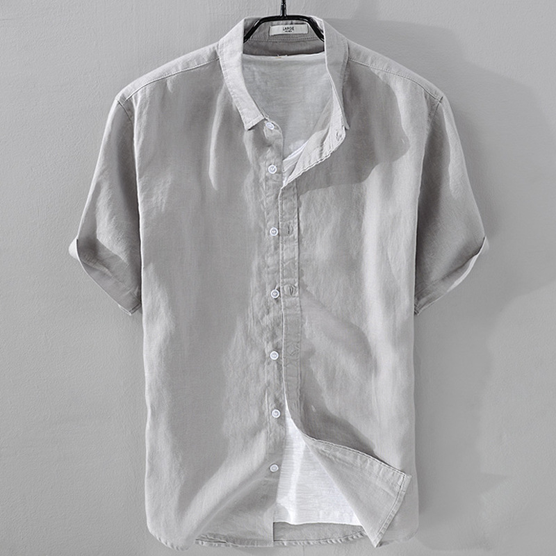 Short Sleeve Breathable Pure Linen Shirt For Men