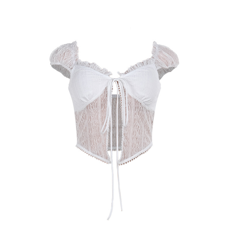 Short Sleeve Lace Lace-up Top