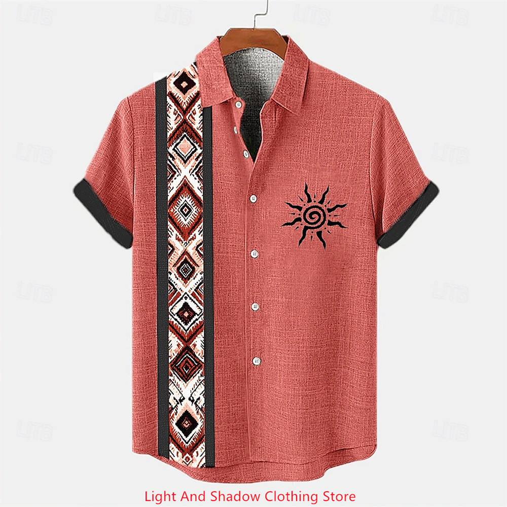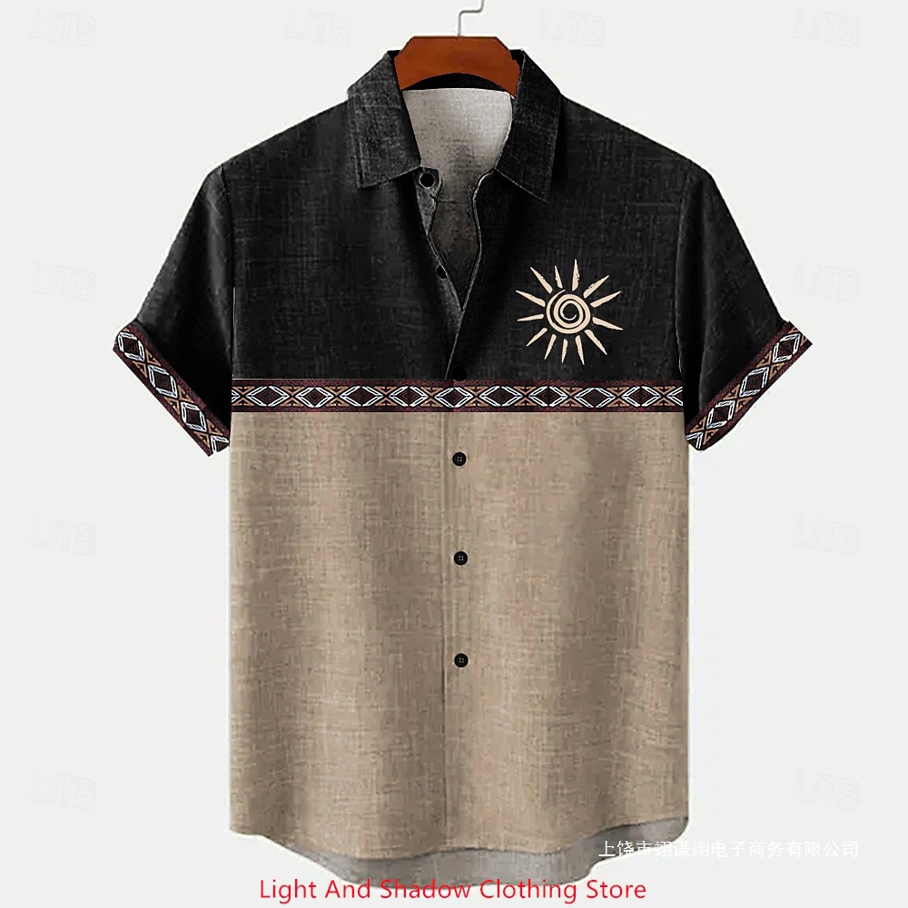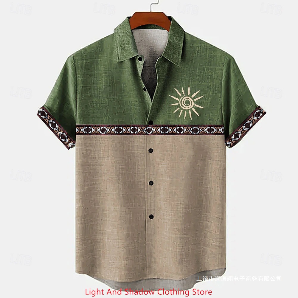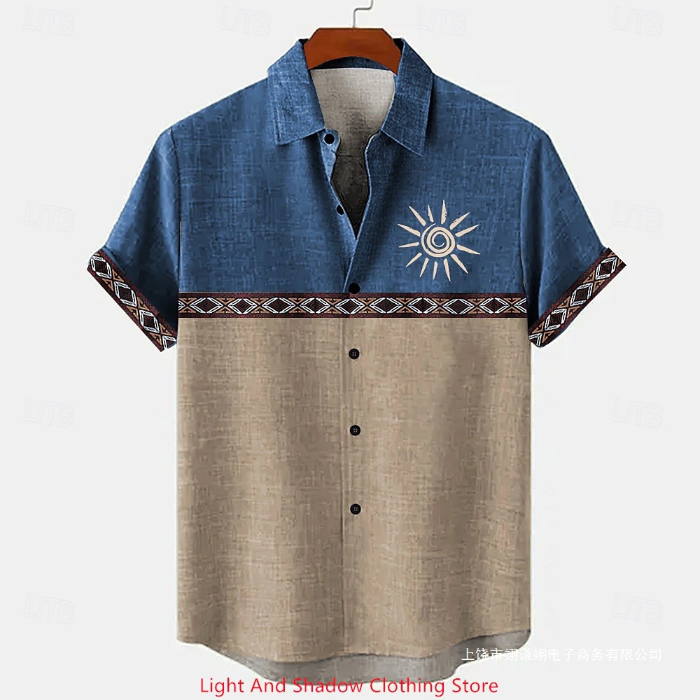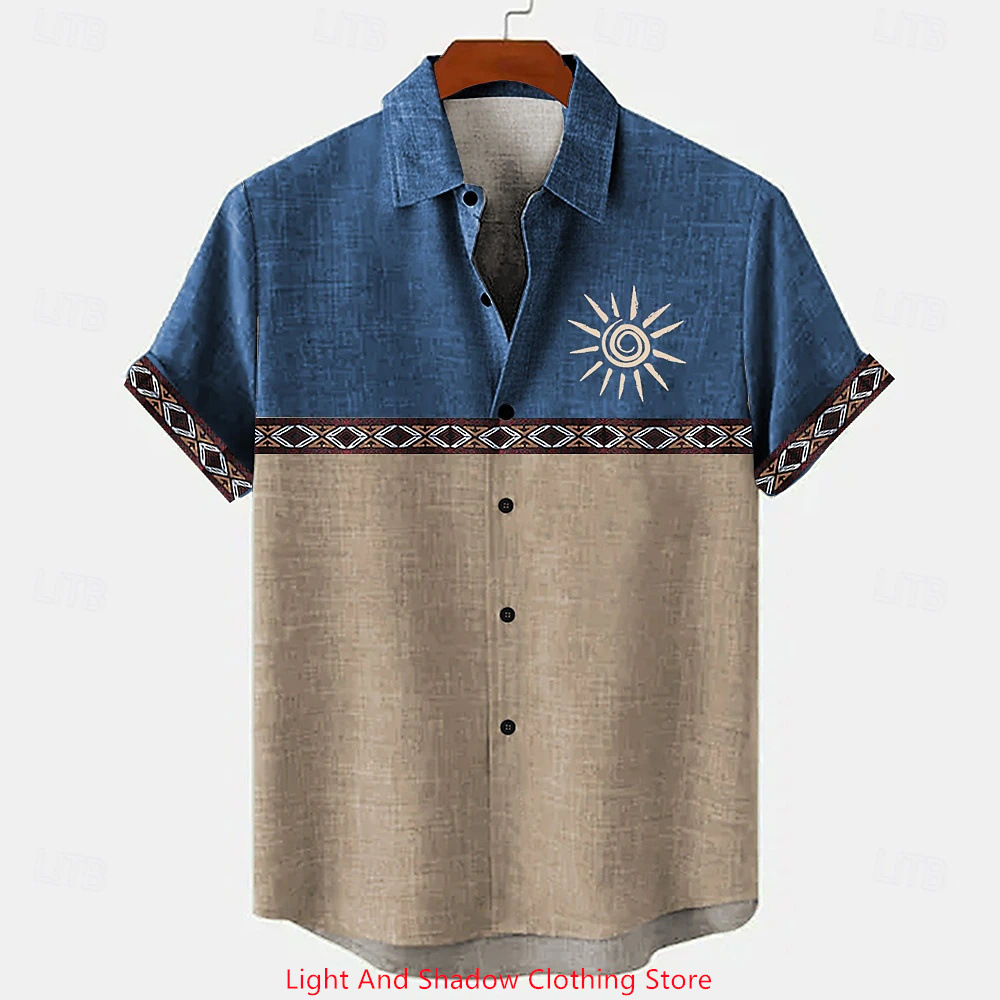 Short-sleeve Patterned Shirt With Printed Buttons And Short-sleeve Patchwork