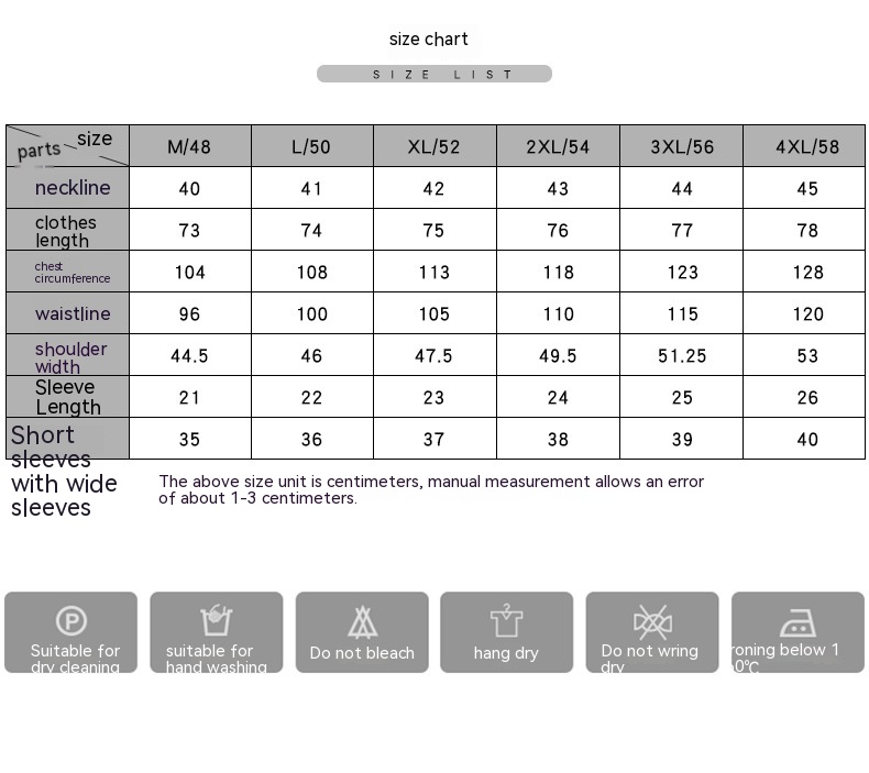 Size: 48/M,50/L,52/XL,54/XXL,56/3XL,58/4XL