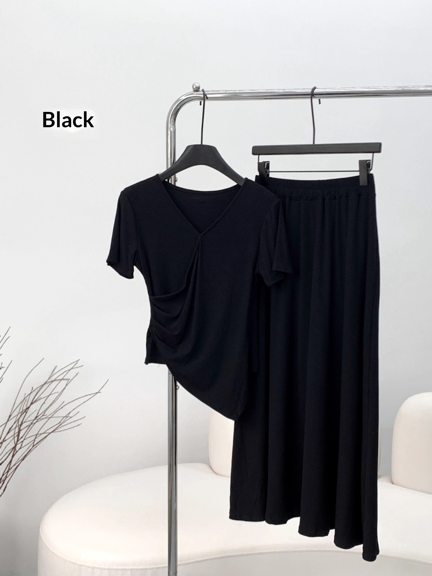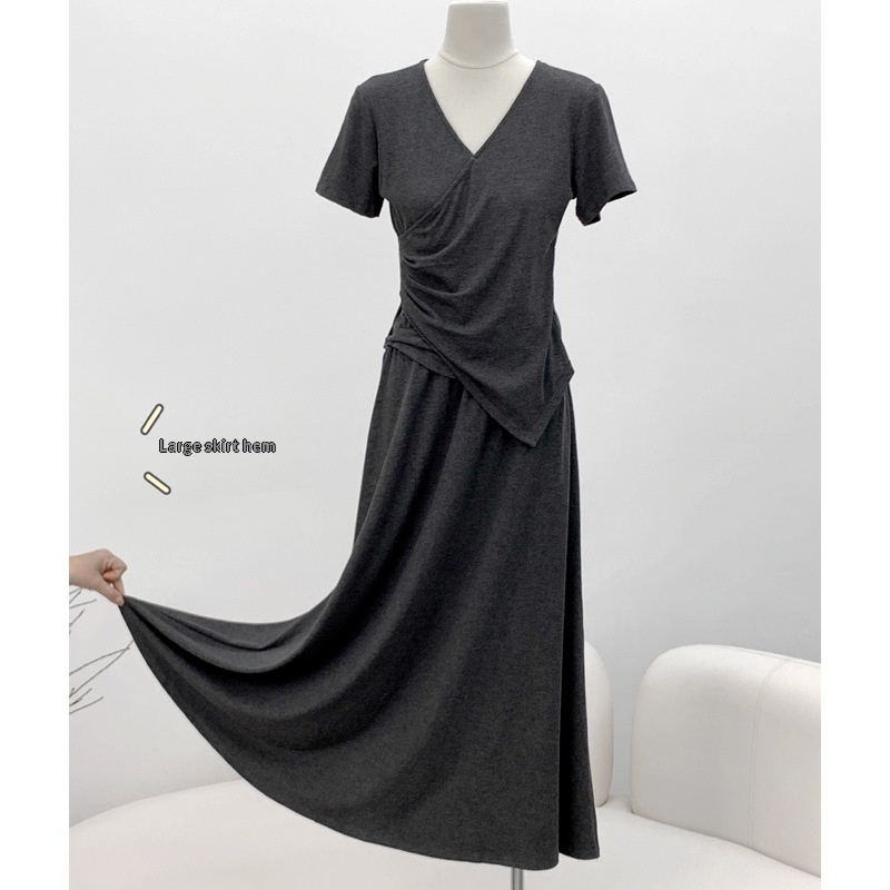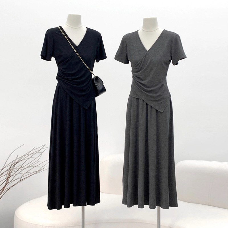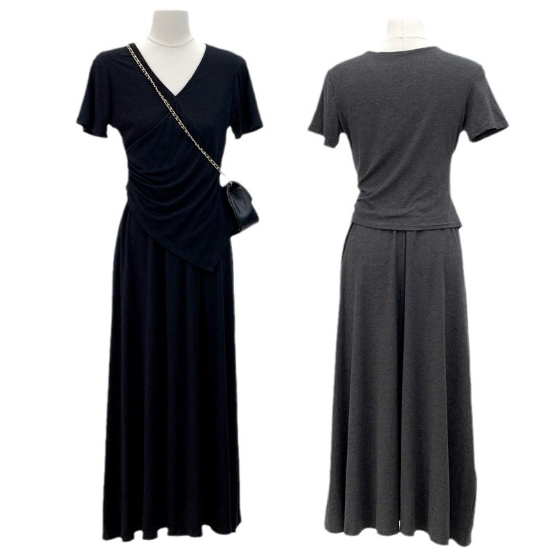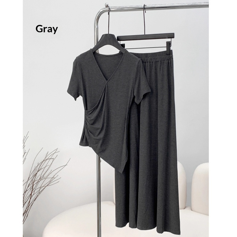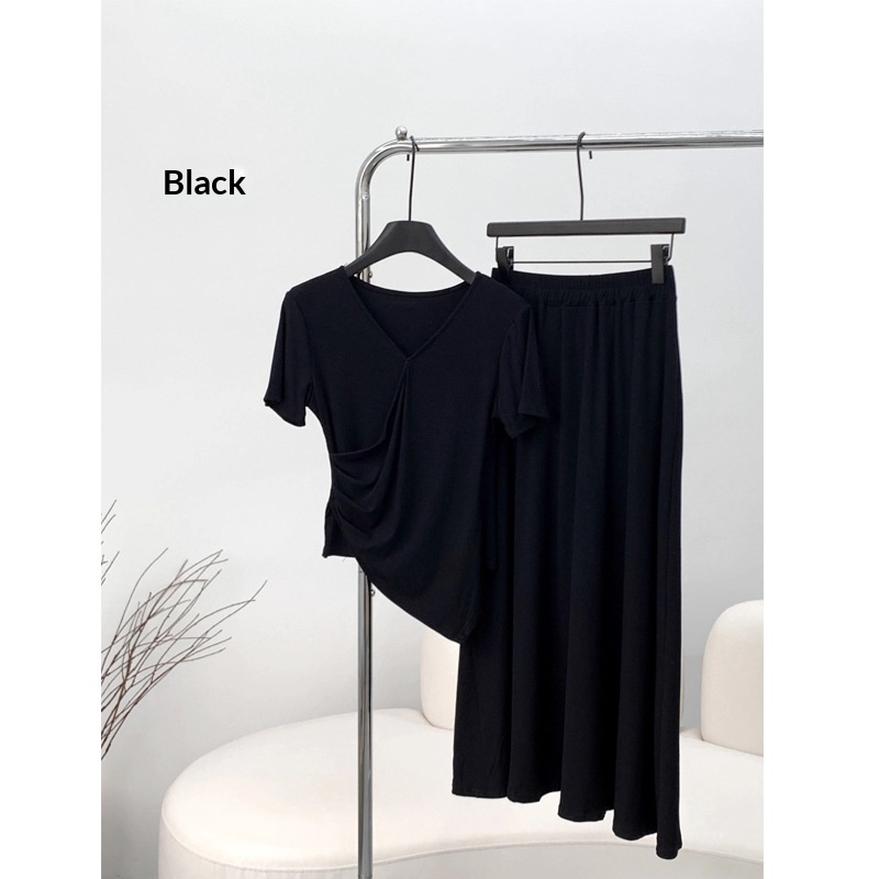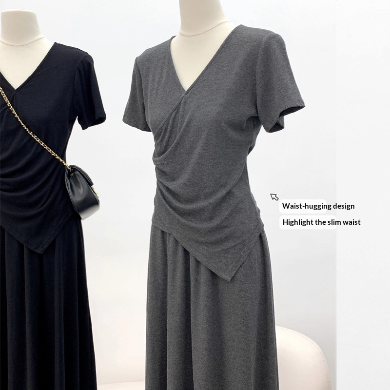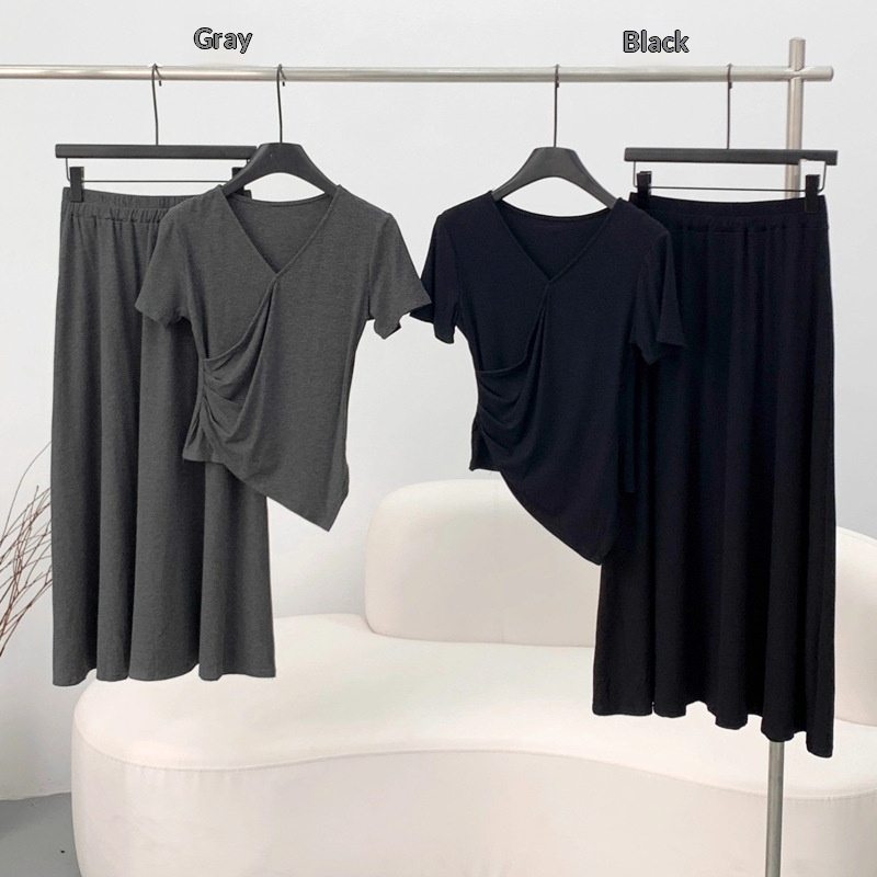 Short-sleeve Top And Drapey Skirt Two-piece Set