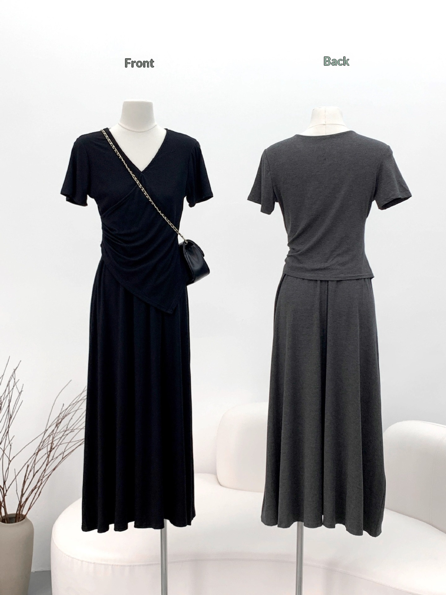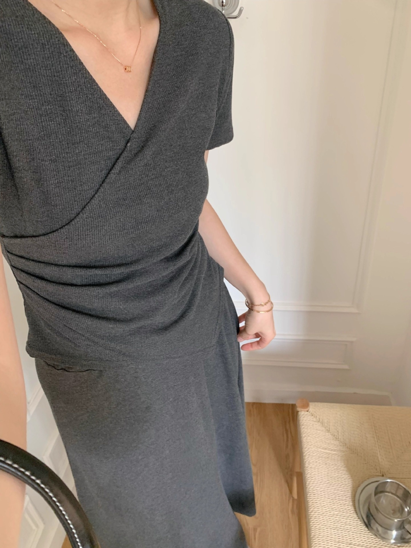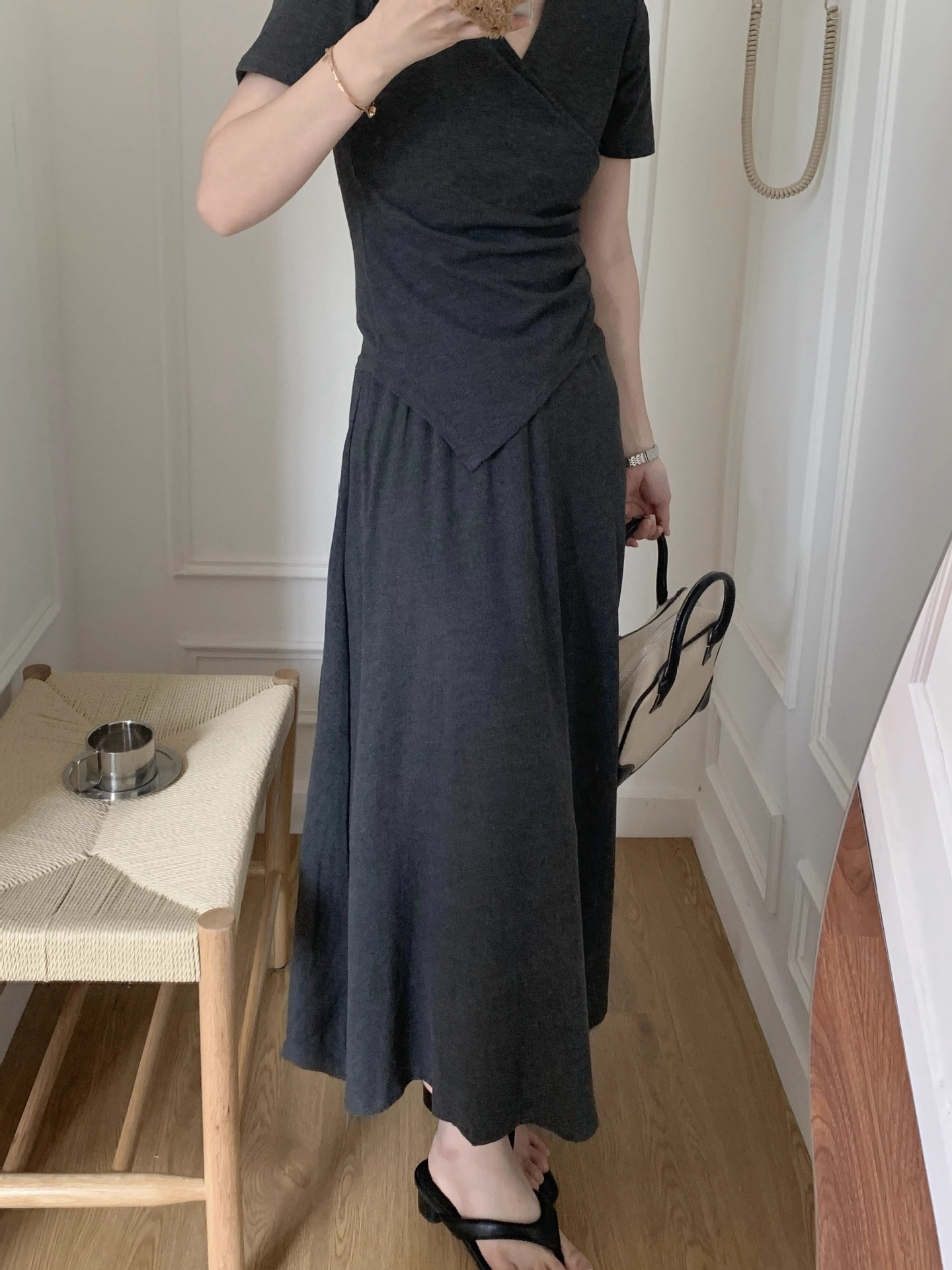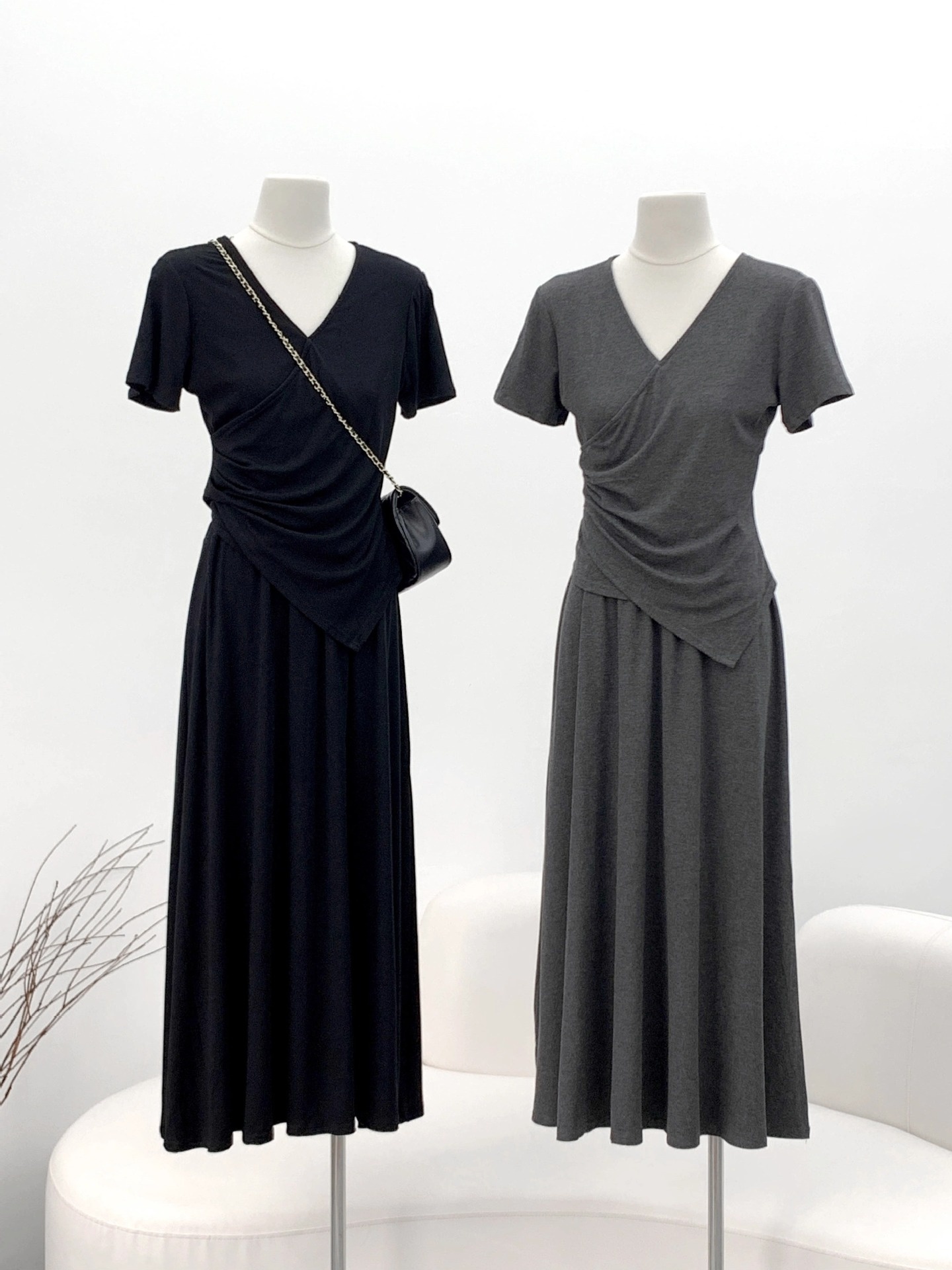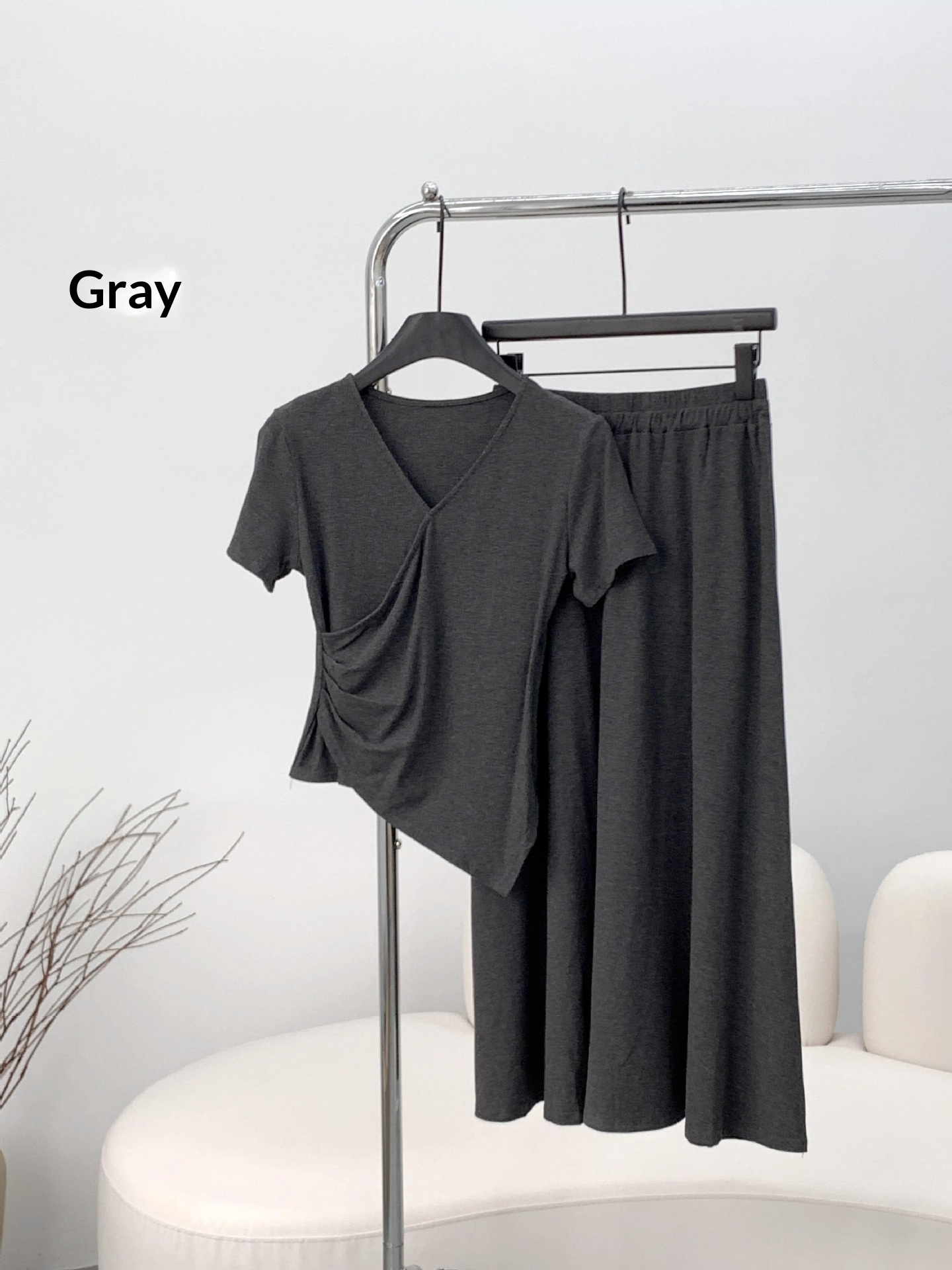 Short-sleeve Top And Drapey Skirt Two-piece Set