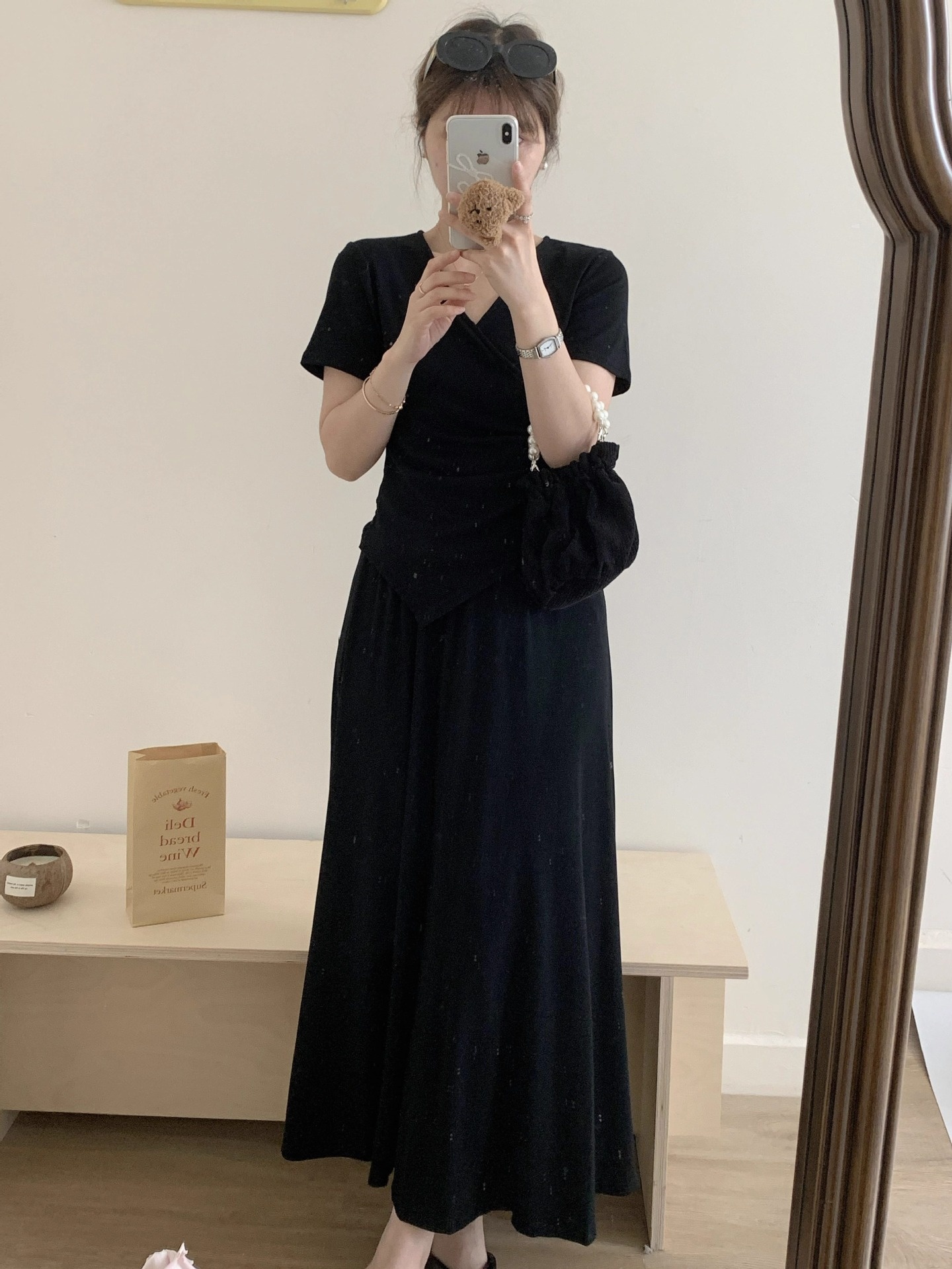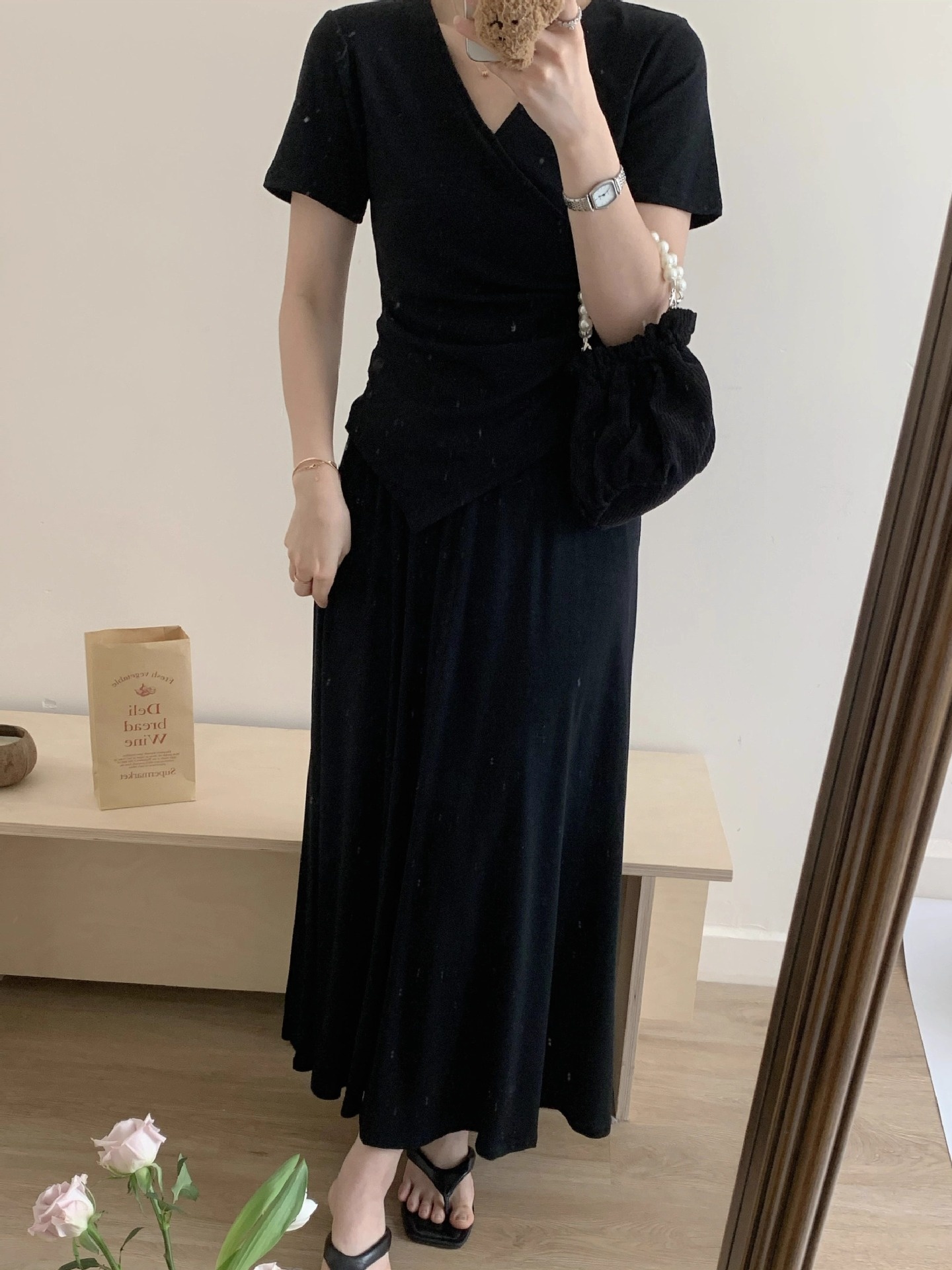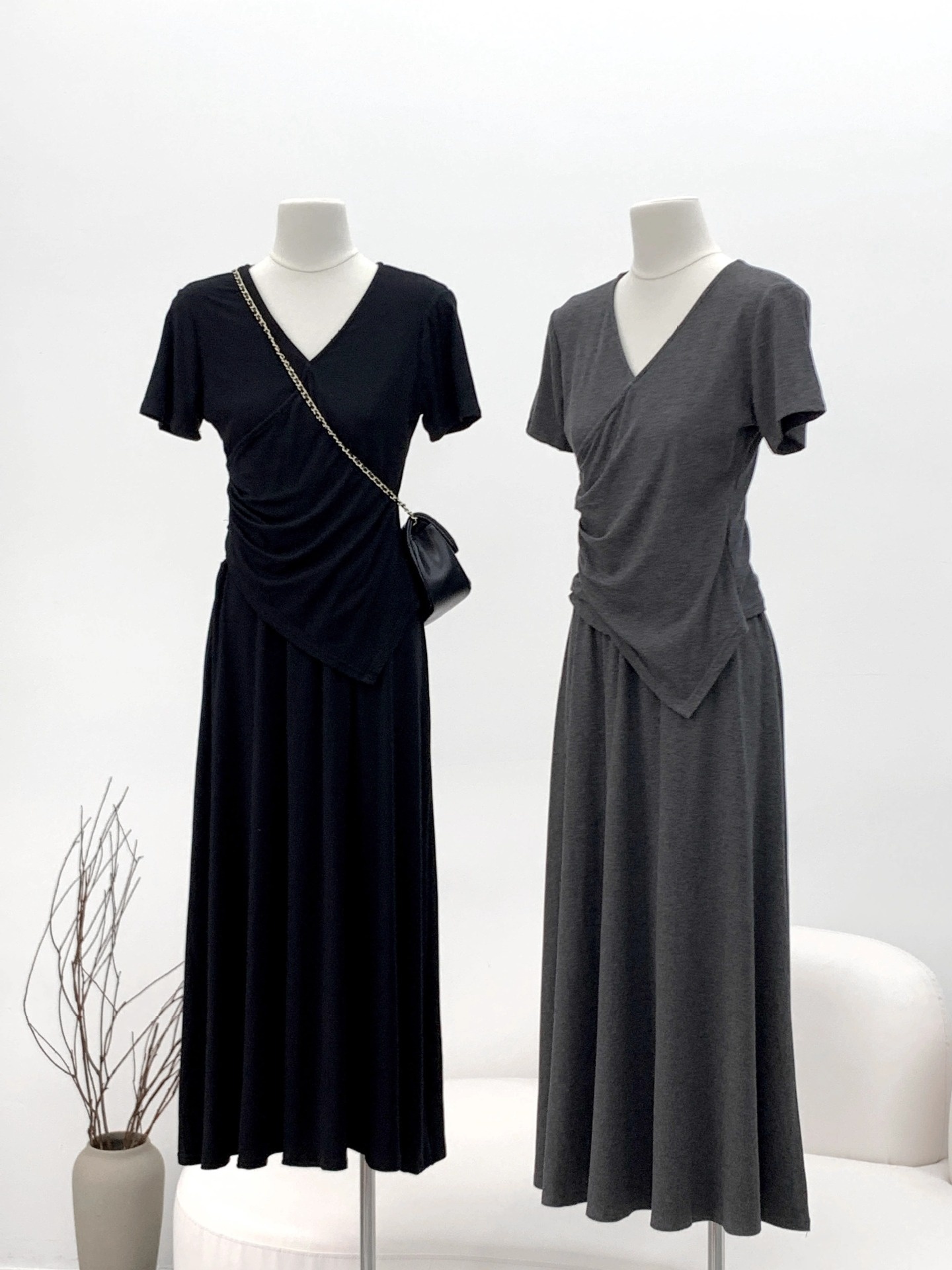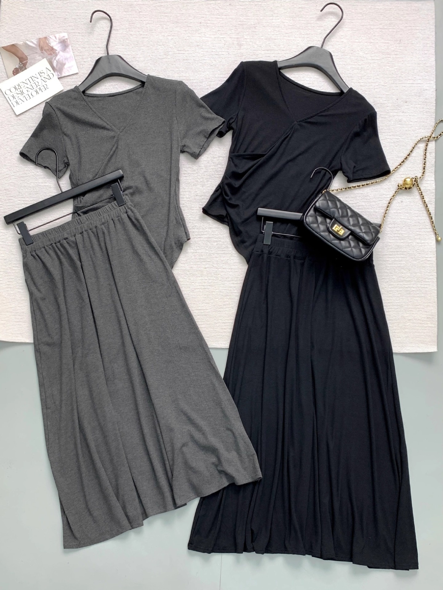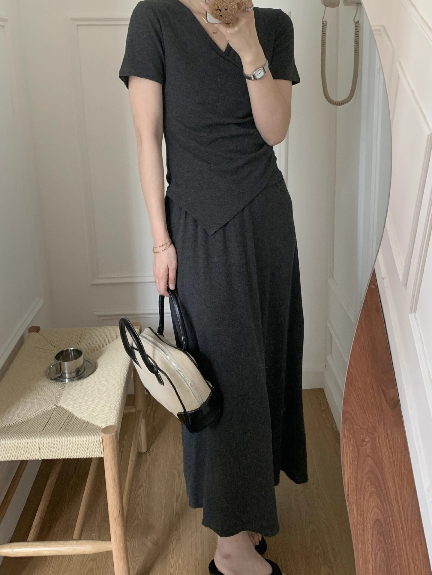 Short-sleeve Top And Drapey Skirt Two-piece Set