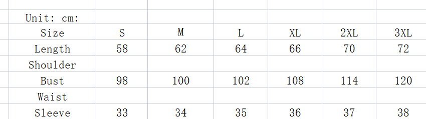 Size : XS,S,M,L,XL,XXL,XXXL,XXXXL