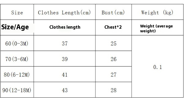 Suitable height: 0-3M(60),3-6M(70),6-12M(80),12-18M(90)