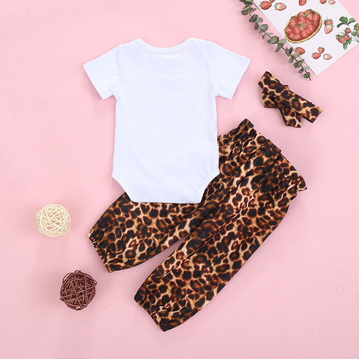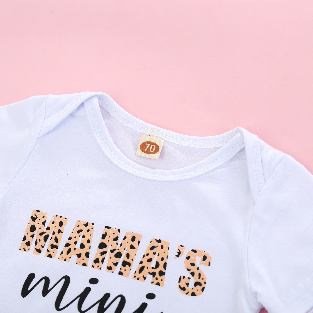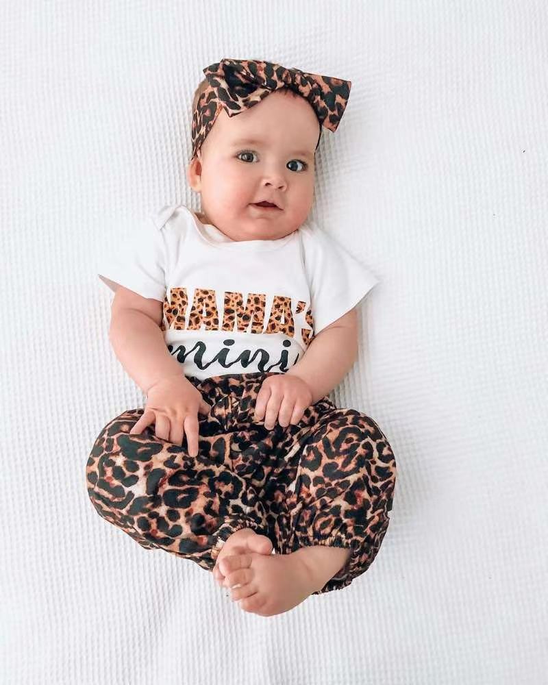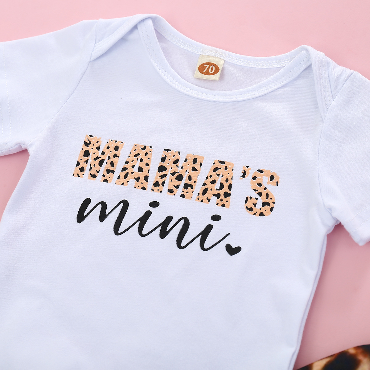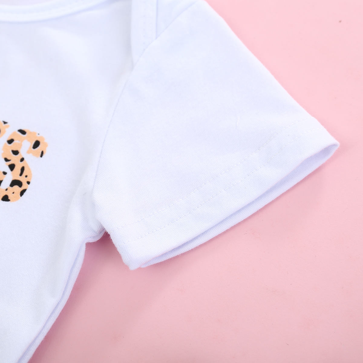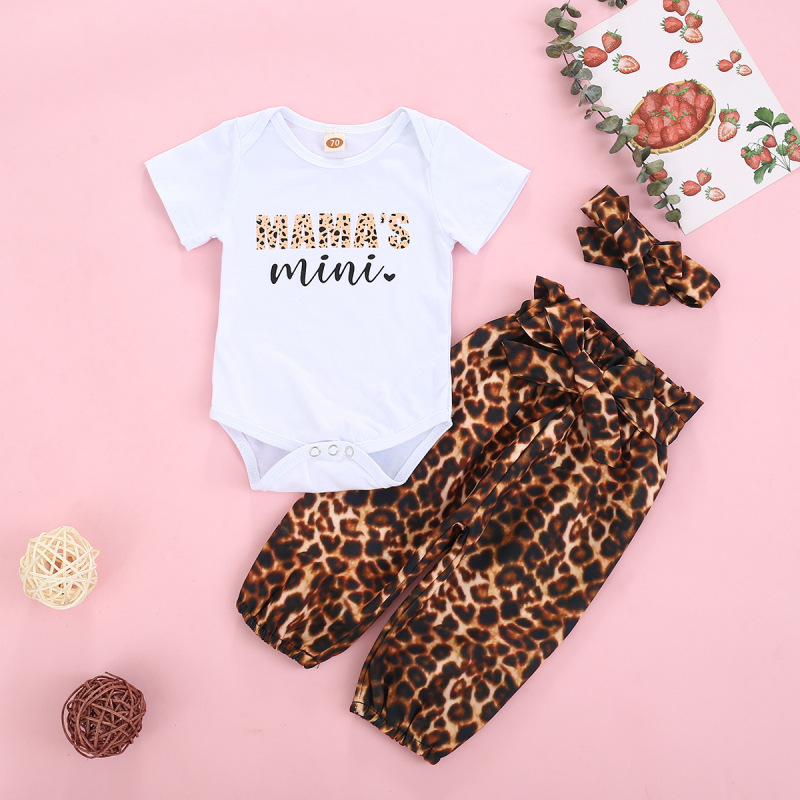Short Sleeved Letter Printed Romper With Leopard Print Waistband Pants