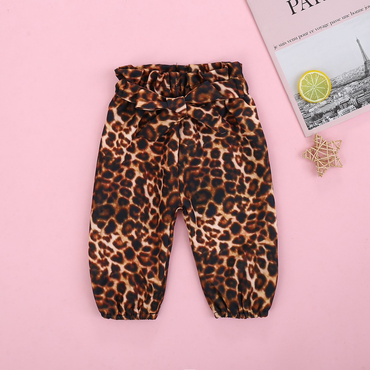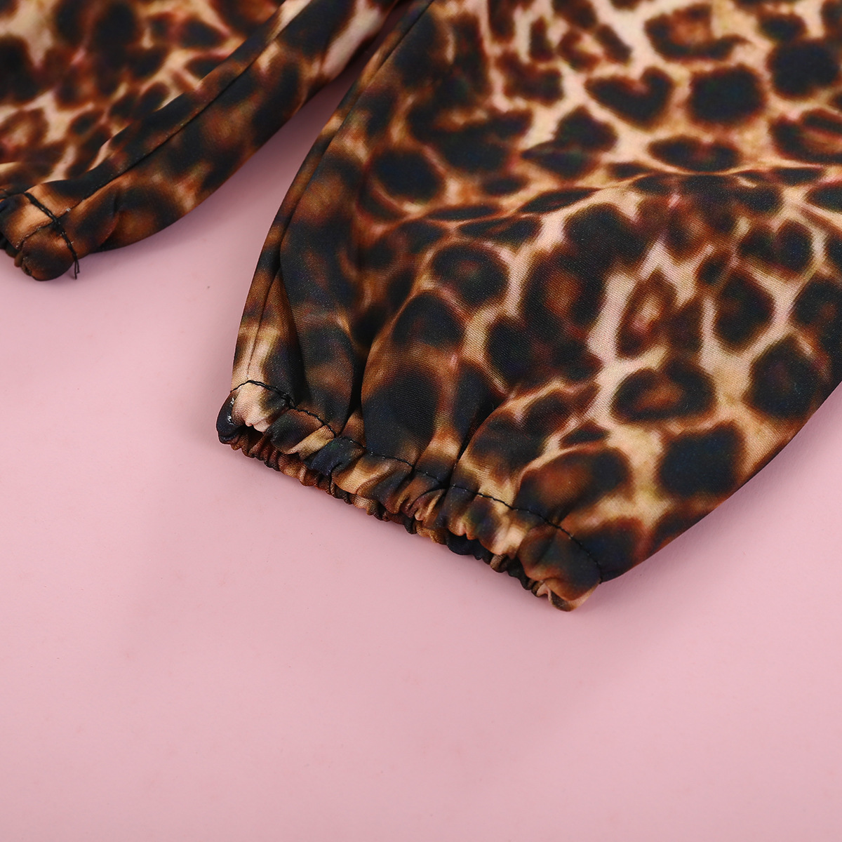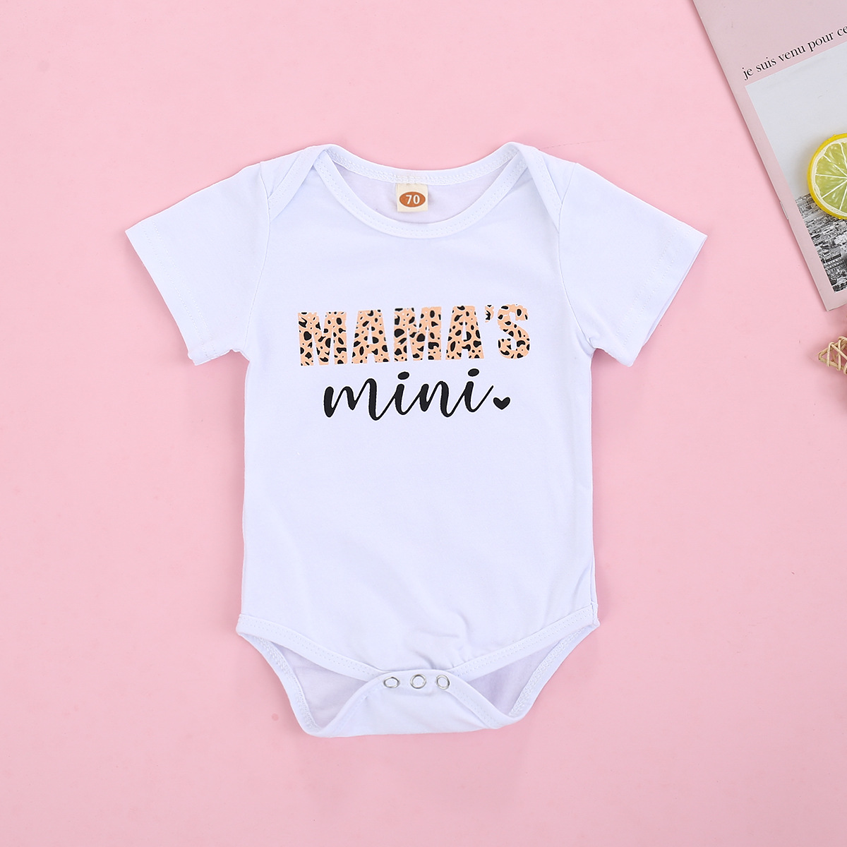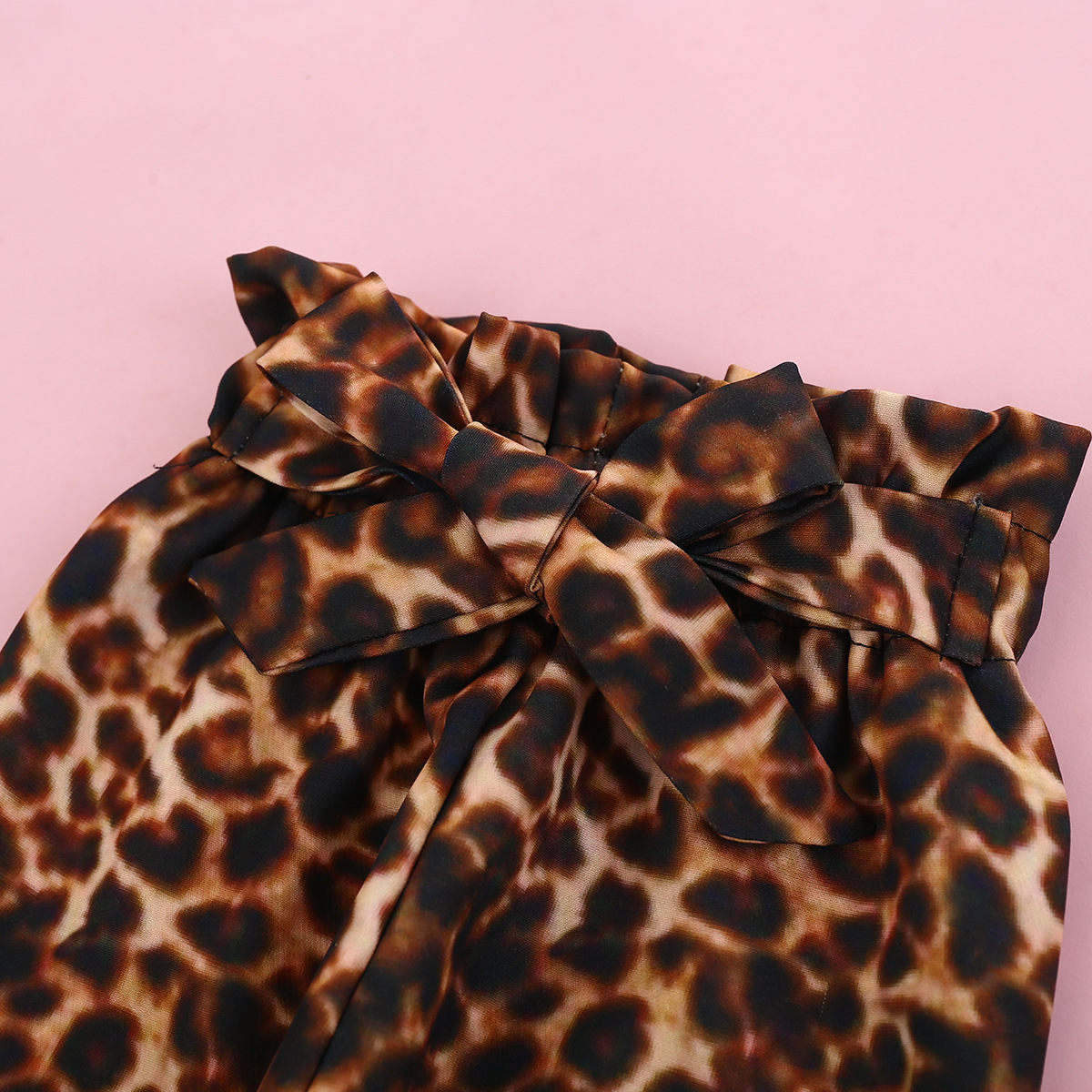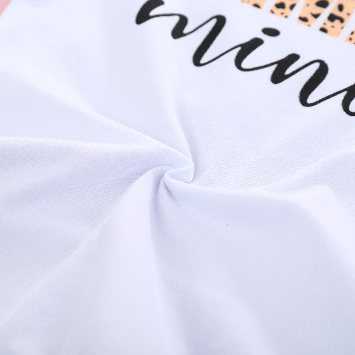 Short Sleeved Letter Printed Romper With Leopard Print Waistband Pants