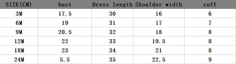 3M (52cm), 6M (56cm), 9M (73cm), 12M (80cm), 18M (85cm), 24M (90cm)