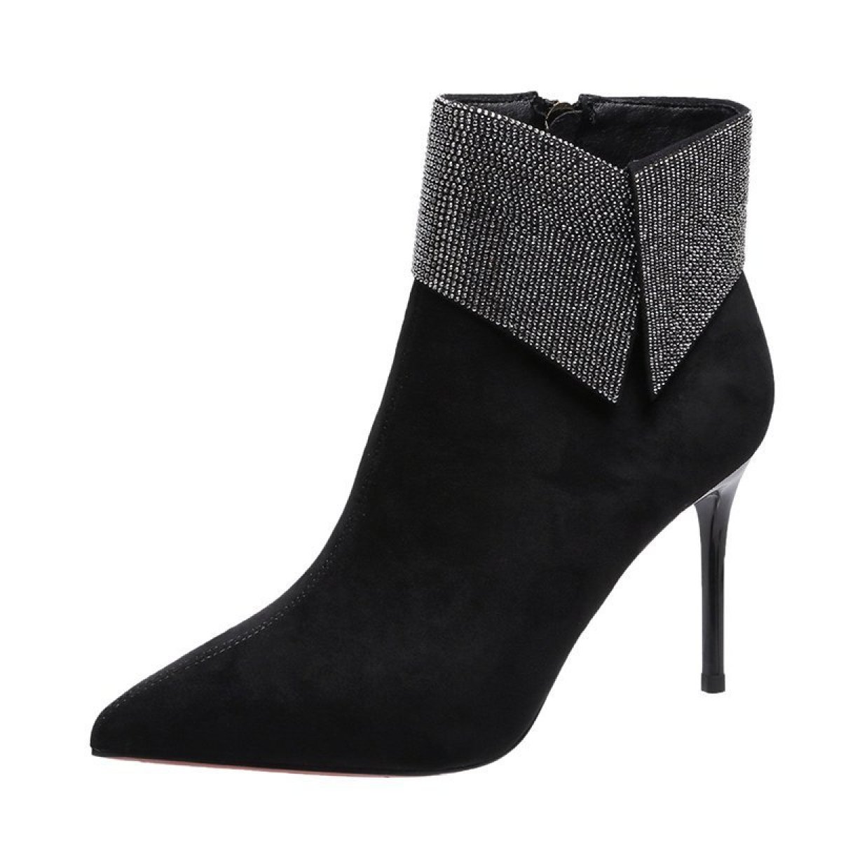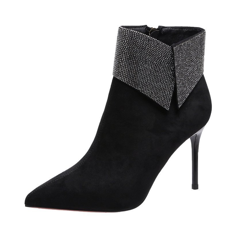 Short tube Pointed High Heels With Rhinestone Stiletto