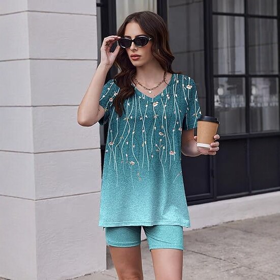 Color: White, Ocean Green, Floral Print