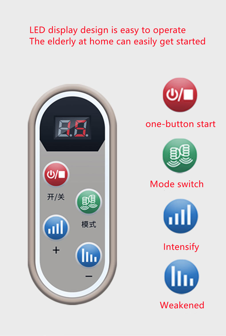 Note: 15 minutes of intelligent shutdown, massage will stop automatically when overtime, to prevent excessive massage