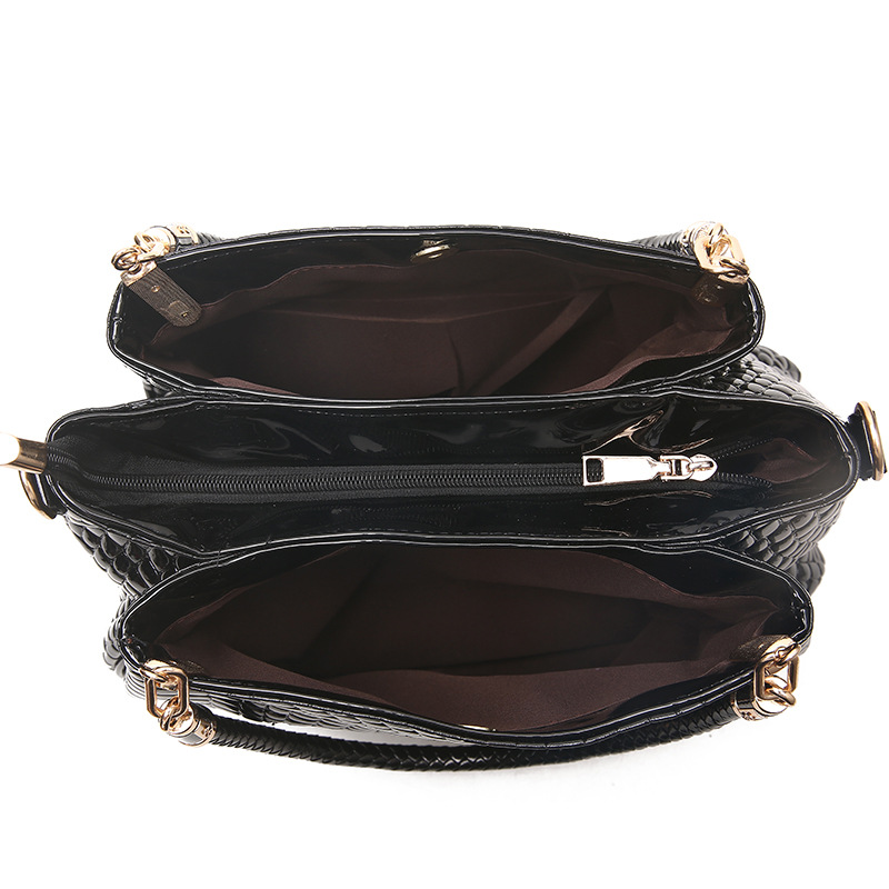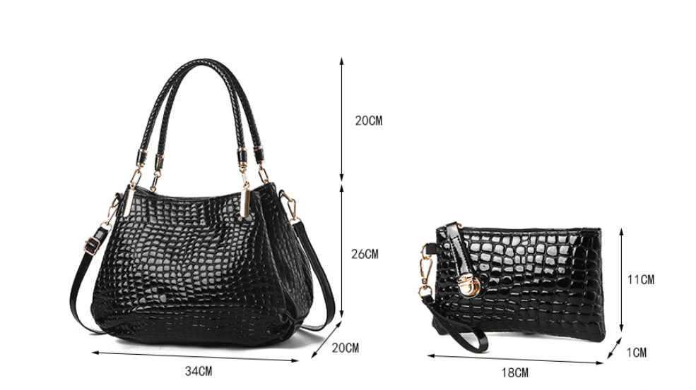 Material: PUSize: Large bag: 34 * 20 * 26cmSmall bag: 18 * 1 * 11cmPopular elements: crocodile patternStyle: shoulder bag