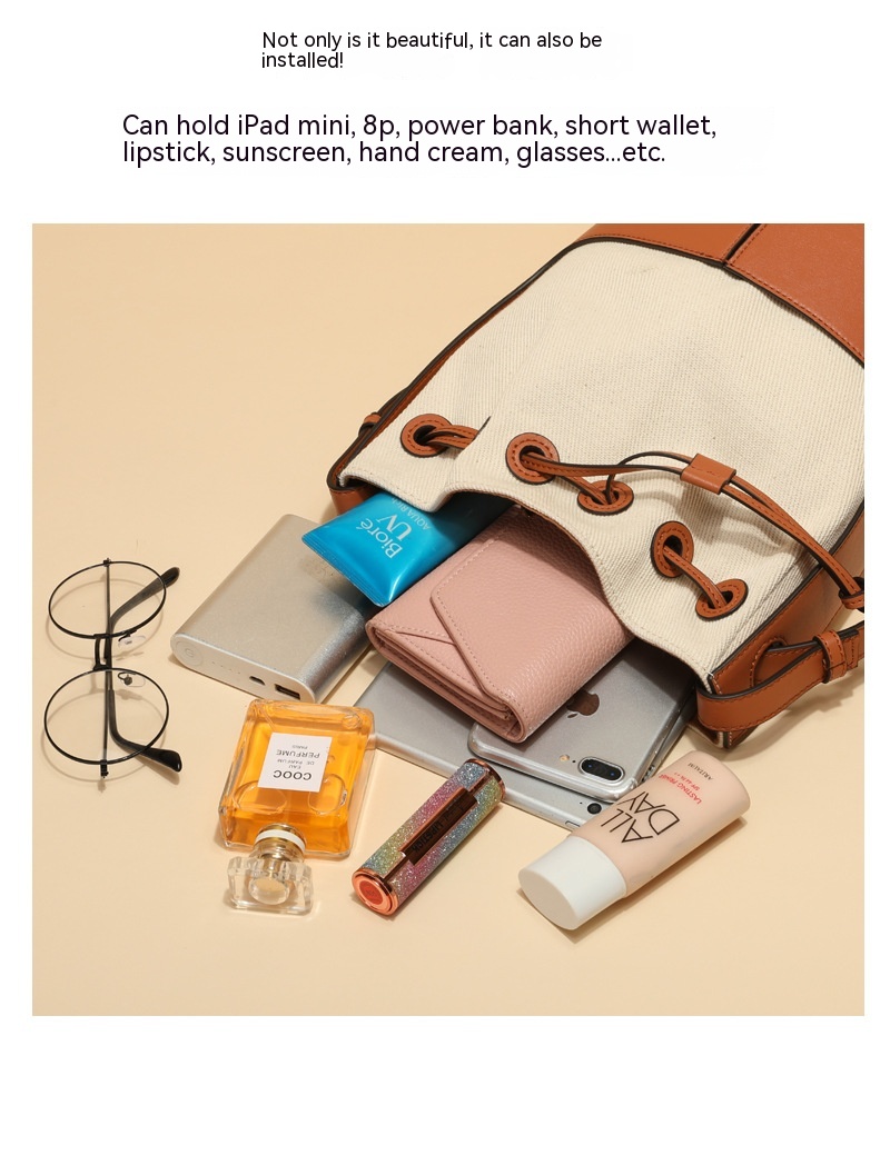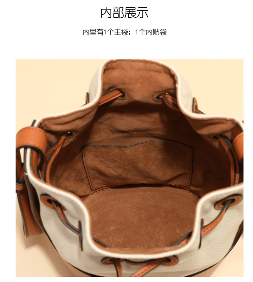 Women's shoulder bag: leather featuresLuggage trend style: bucket bagLining texture: polyester cotton