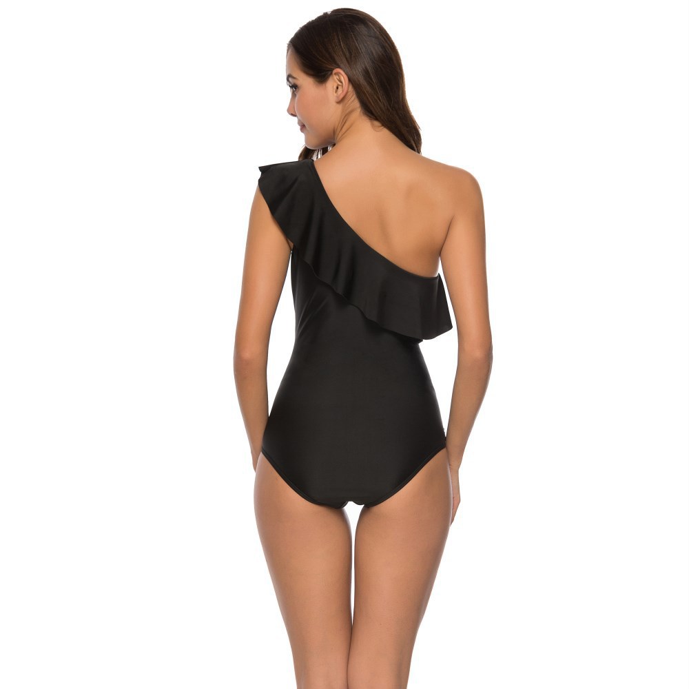Shoulder ruffled solid color bikini