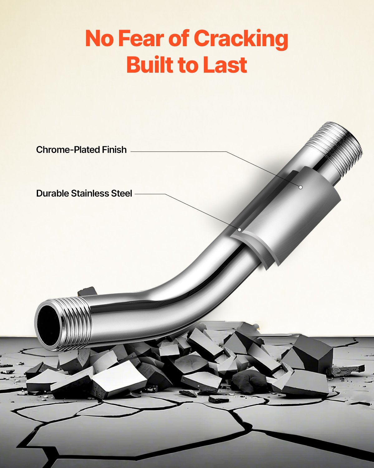 Premium Stainless Steel Construction: Crafted from high-strength stainless steel, this shower head extension arm is built to last. The chrome-plated rust-resistant finish ensures double protection, keeping it strong and stable for long-term use