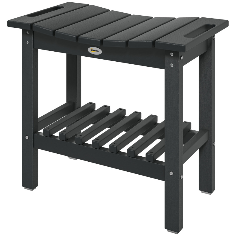 Shower Bench, Waterproof Shower Stool With Handle, Storage Shelf, Non-Slip Pads For Indoor Outdoor, Black