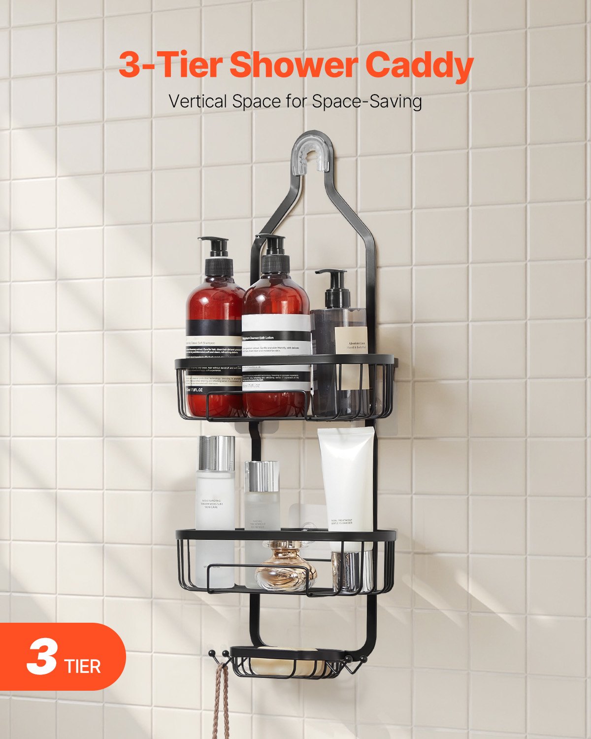 3-Tier Large Capacity: Our shower caddy features large capacity with 3 tiers for organizing various bathroom items like body wash, shampoo, and conditioner. It maximizes storage in your shower space