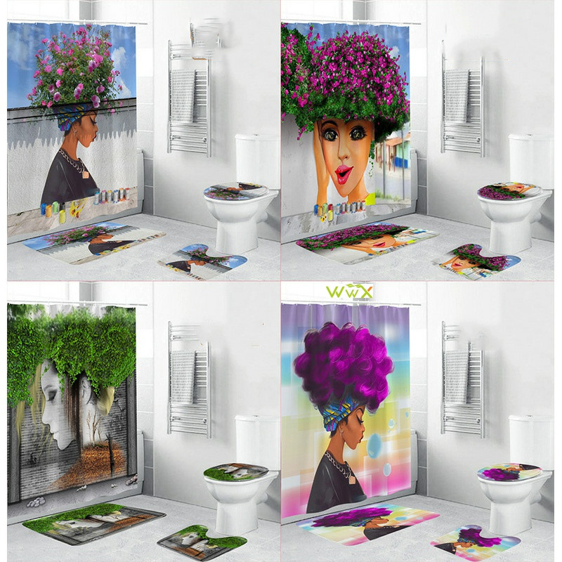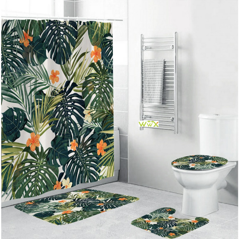 Such as 150X180 4pcs set: toilet seat + u-shaped mat + floor mat + 150X180 shower curtain