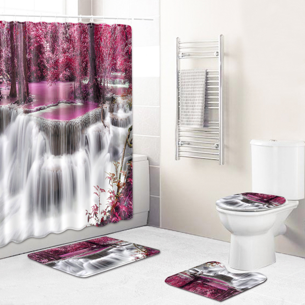 Size: graphic customization, shower curtain 45*75 floor mat three-piece set, shower curtain 50*80 floor mat three-piece set